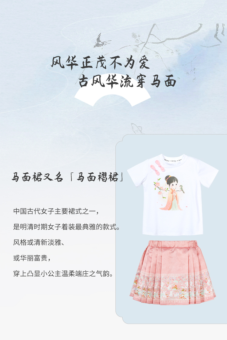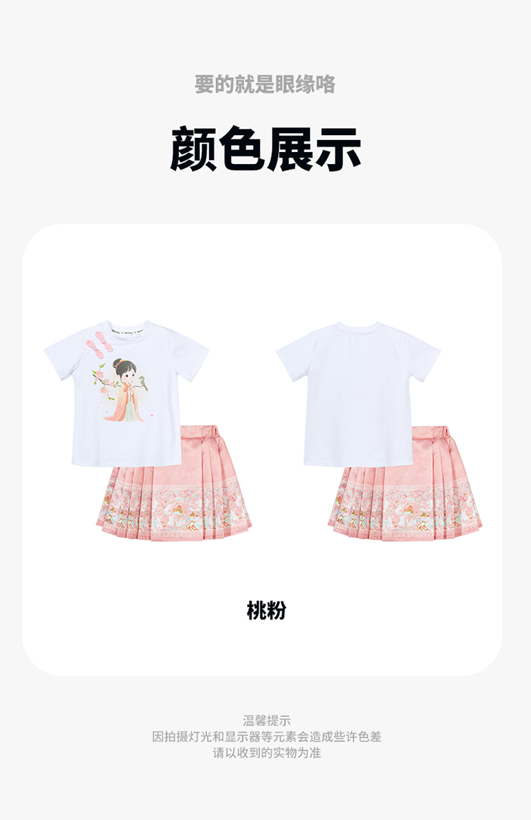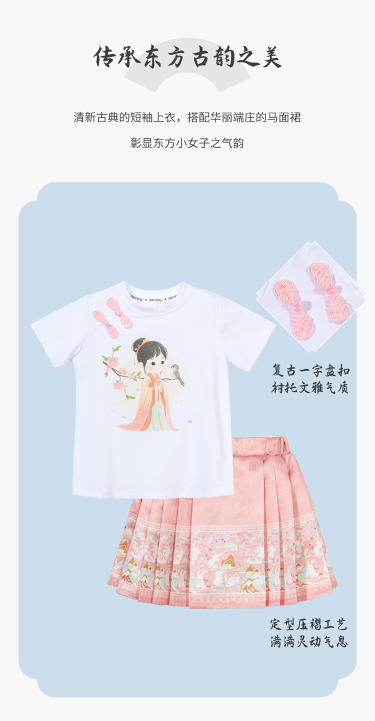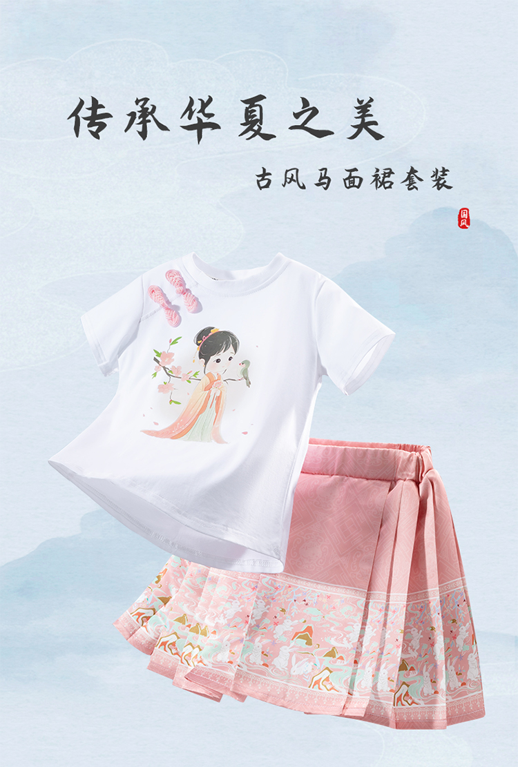 贝贝怡童装女童短袖套装马面裙中国风两件套2024夏季新款t恤短裙ZB2DT030