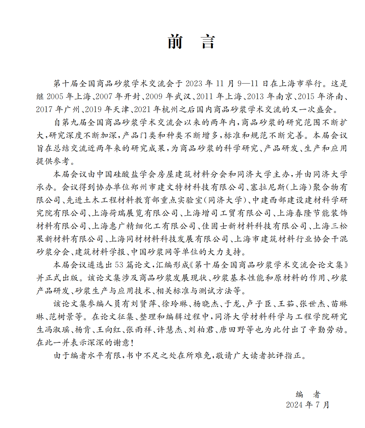 第十届全国商品砂浆学术交流会论文集/王培铭等 主编 中国建材工业出版社, 2024 ISBN 9787516042267