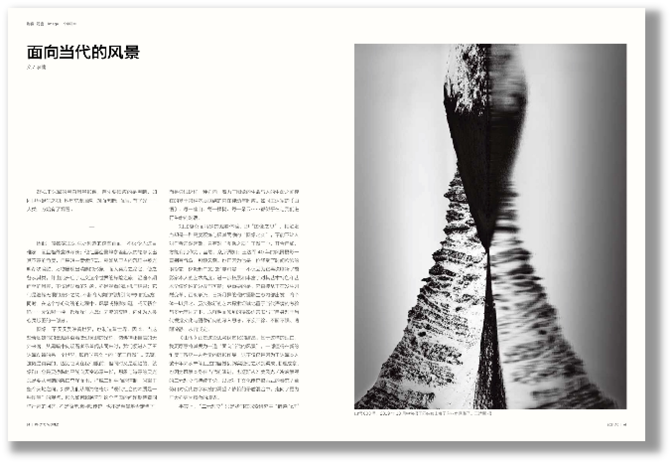 相看两不厌,唯有四姑娘山。本期的“个案研究”栏目,首发了 40 年前业已成名的王达 军近 5 年来在问景中问道,以哲学观照自然,创造出的超越“视觉惊奇”的《景观·山悟》。王达军始终坚持突破机械复制产物的照相机的局限,以心观物,每次创作都是第一次,故屡得 正果。