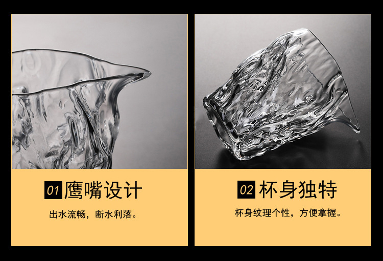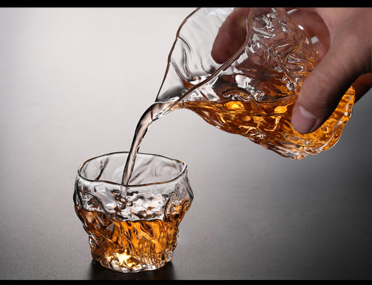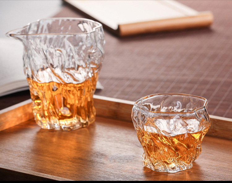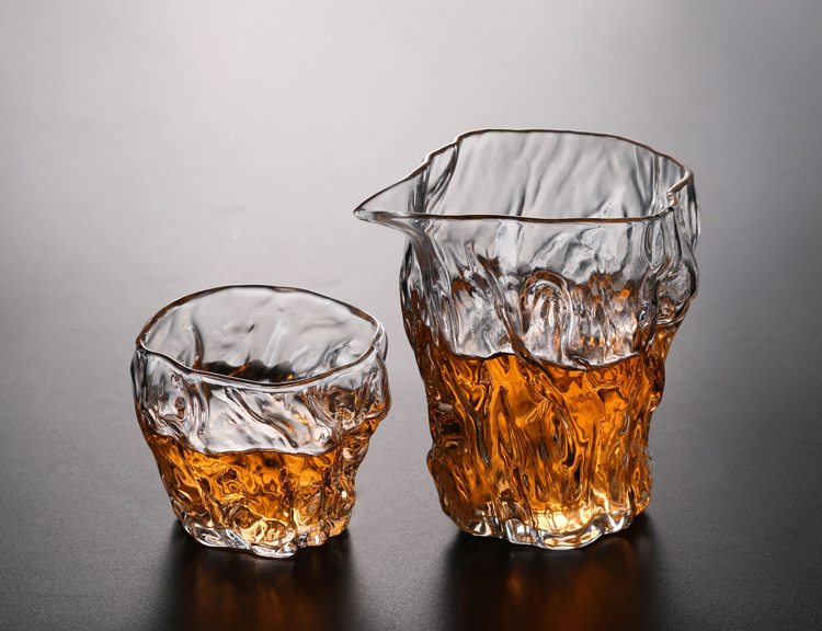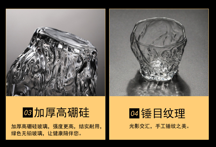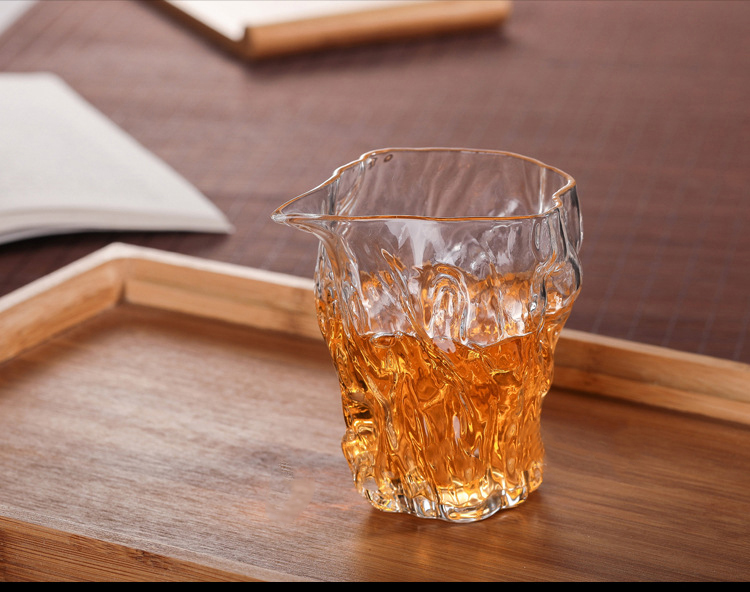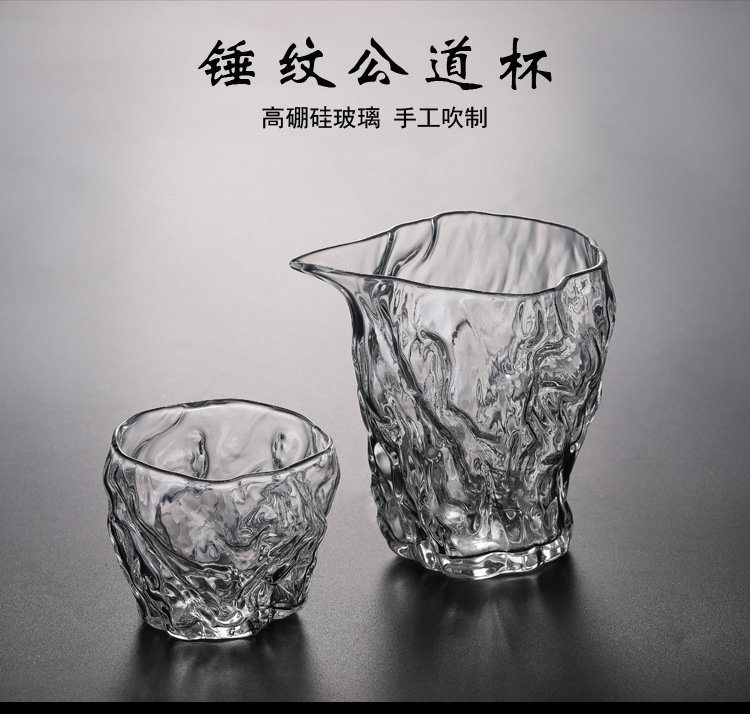 益思泉丨树墩 公道杯/品茗杯 高硼硅玻璃 锤纹透明玻璃 茶杯 茶海 主人杯 玻璃茶杯 100ml