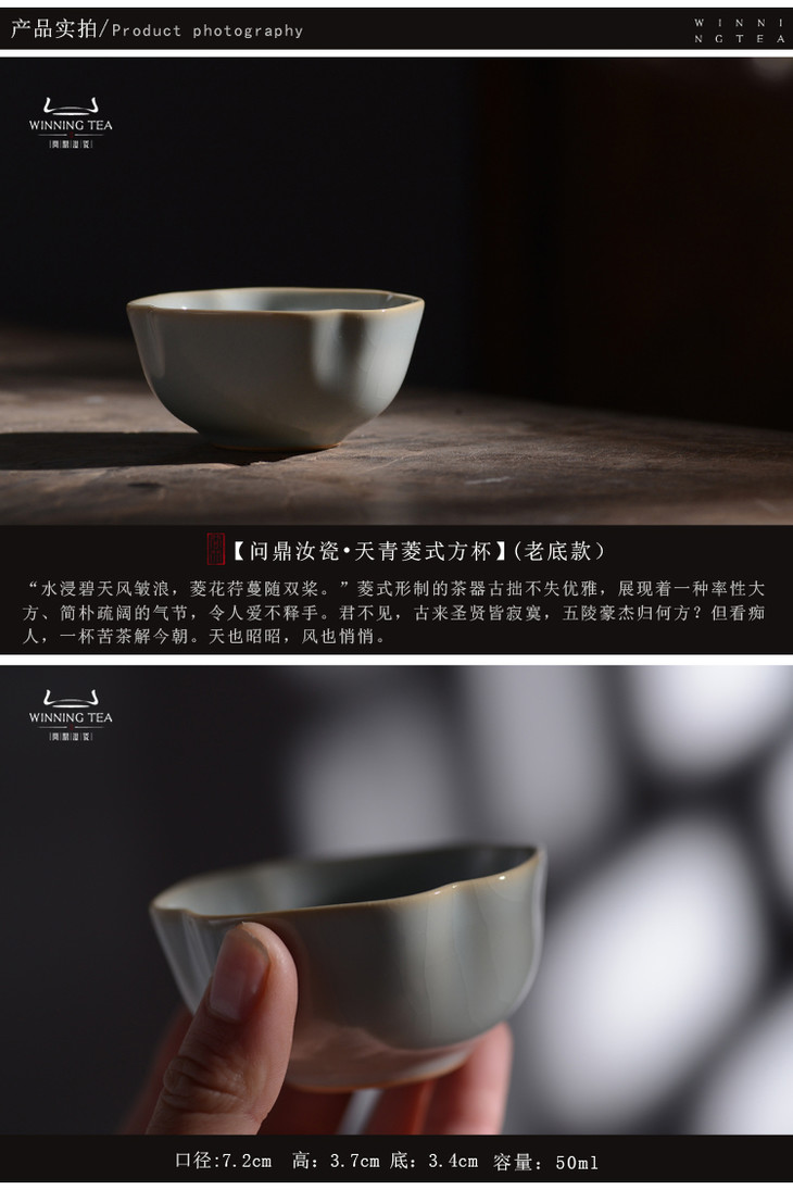 问鼎汝瓷天青收藏款菱式方杯(缺货)