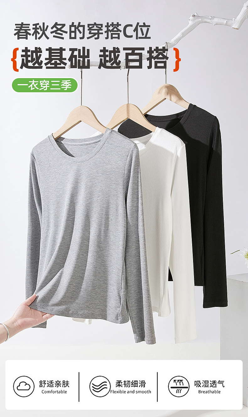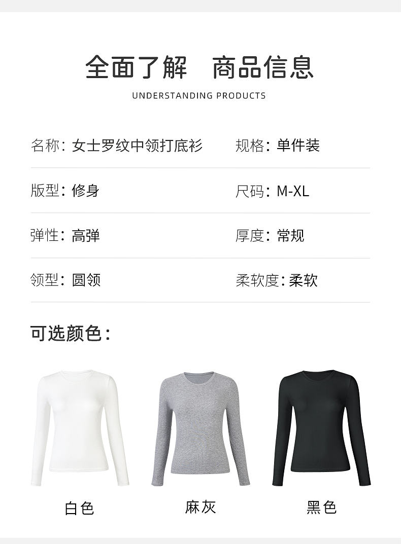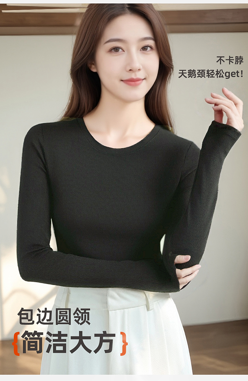 雅黛俪女士螺纹打底衫秋冬季外穿内搭黑色显瘦上衣2025年新款