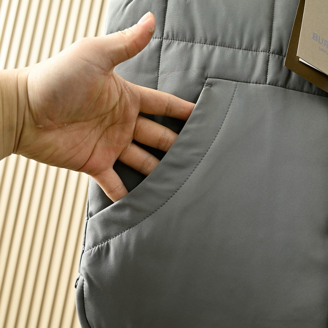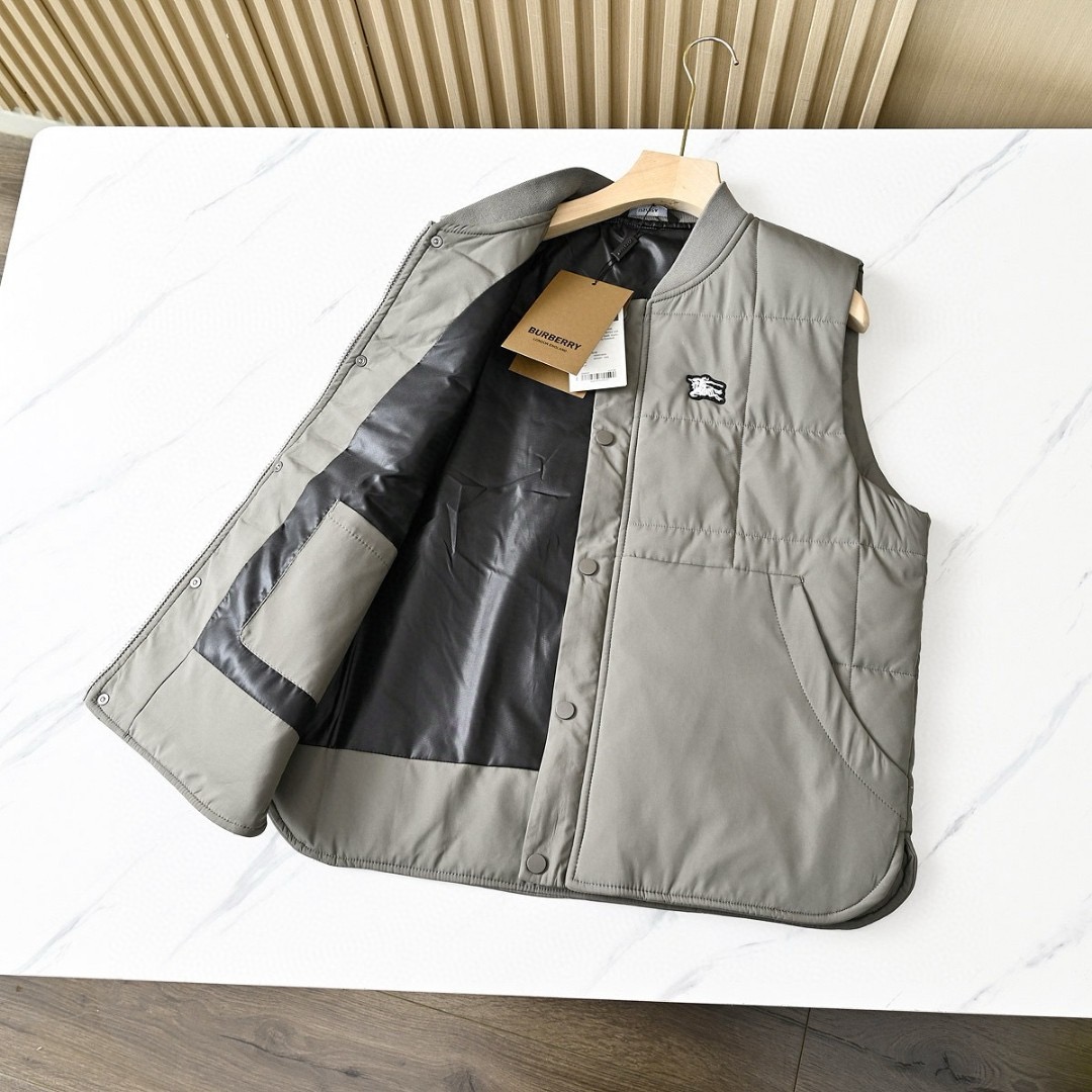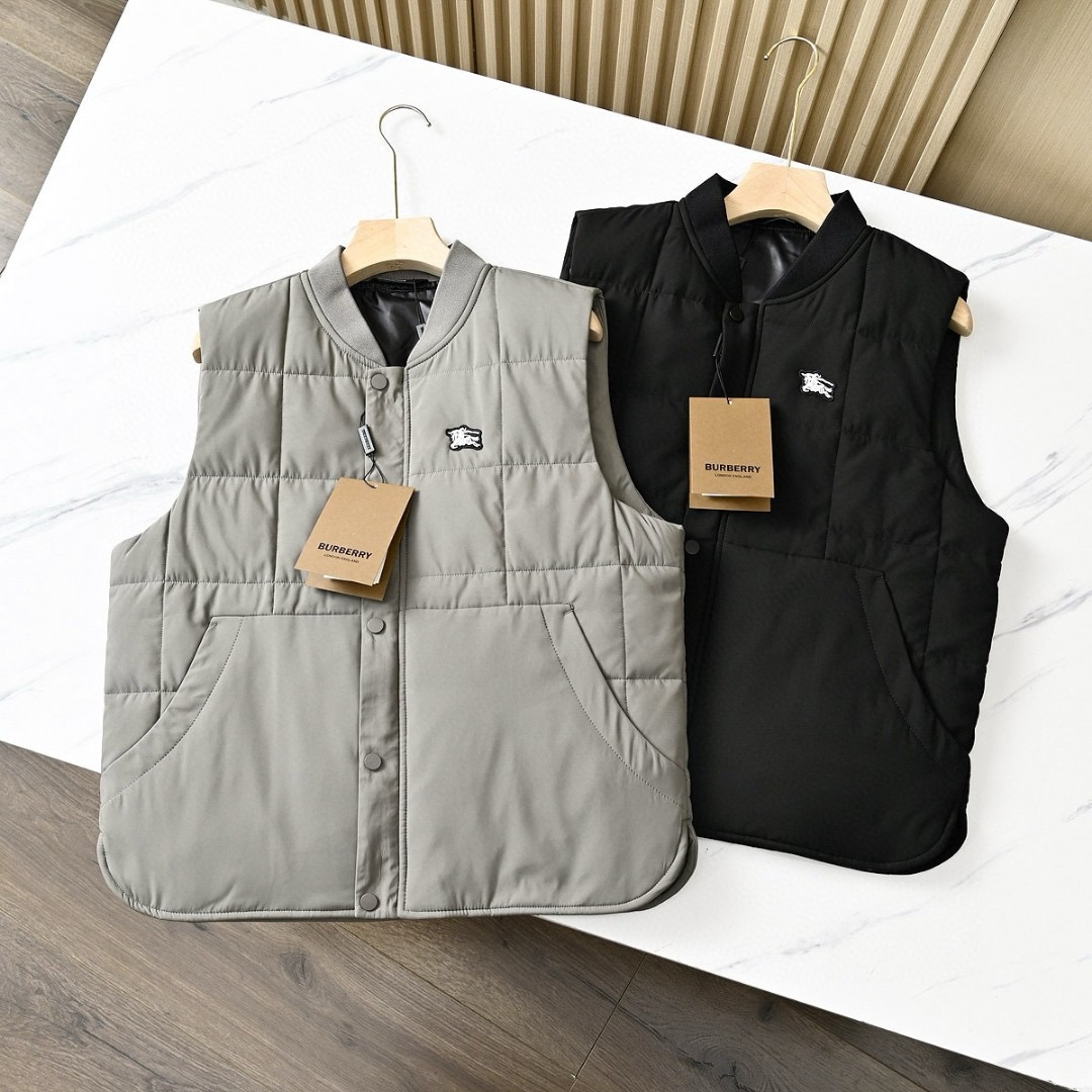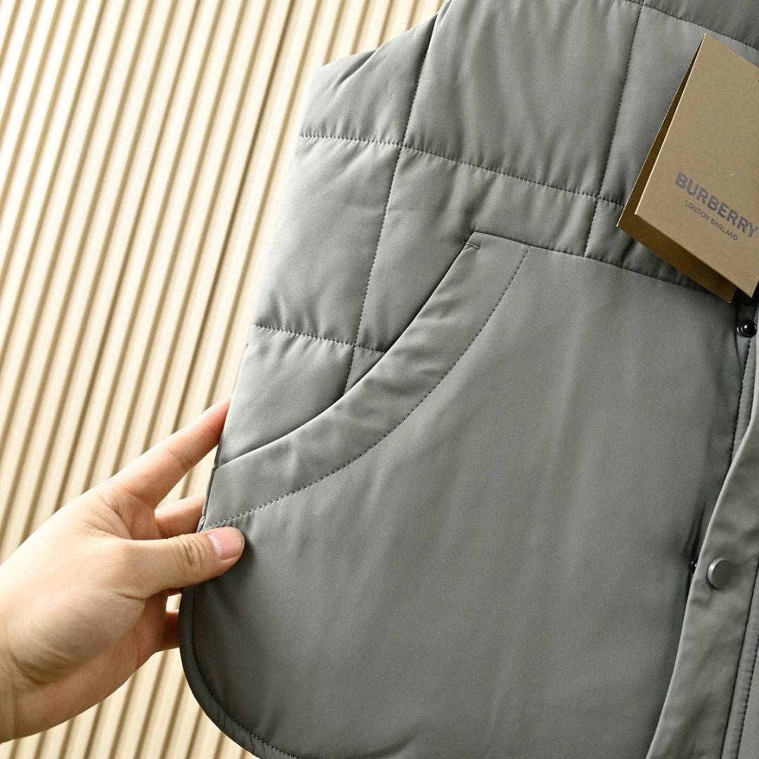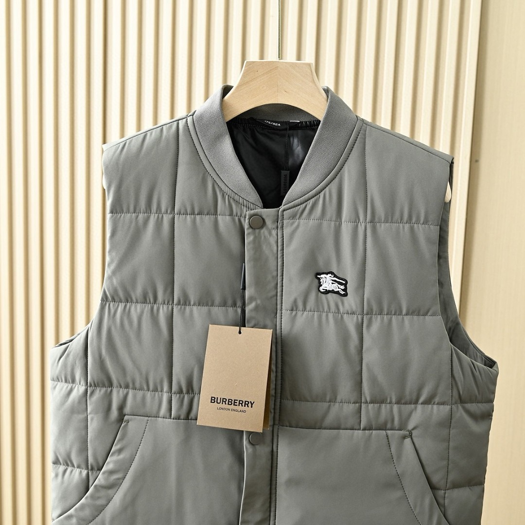 芭宝莉BURBERRY 2025秋冬季男士防水纯色棒球领休闲保暖羽绒背心马甲外套