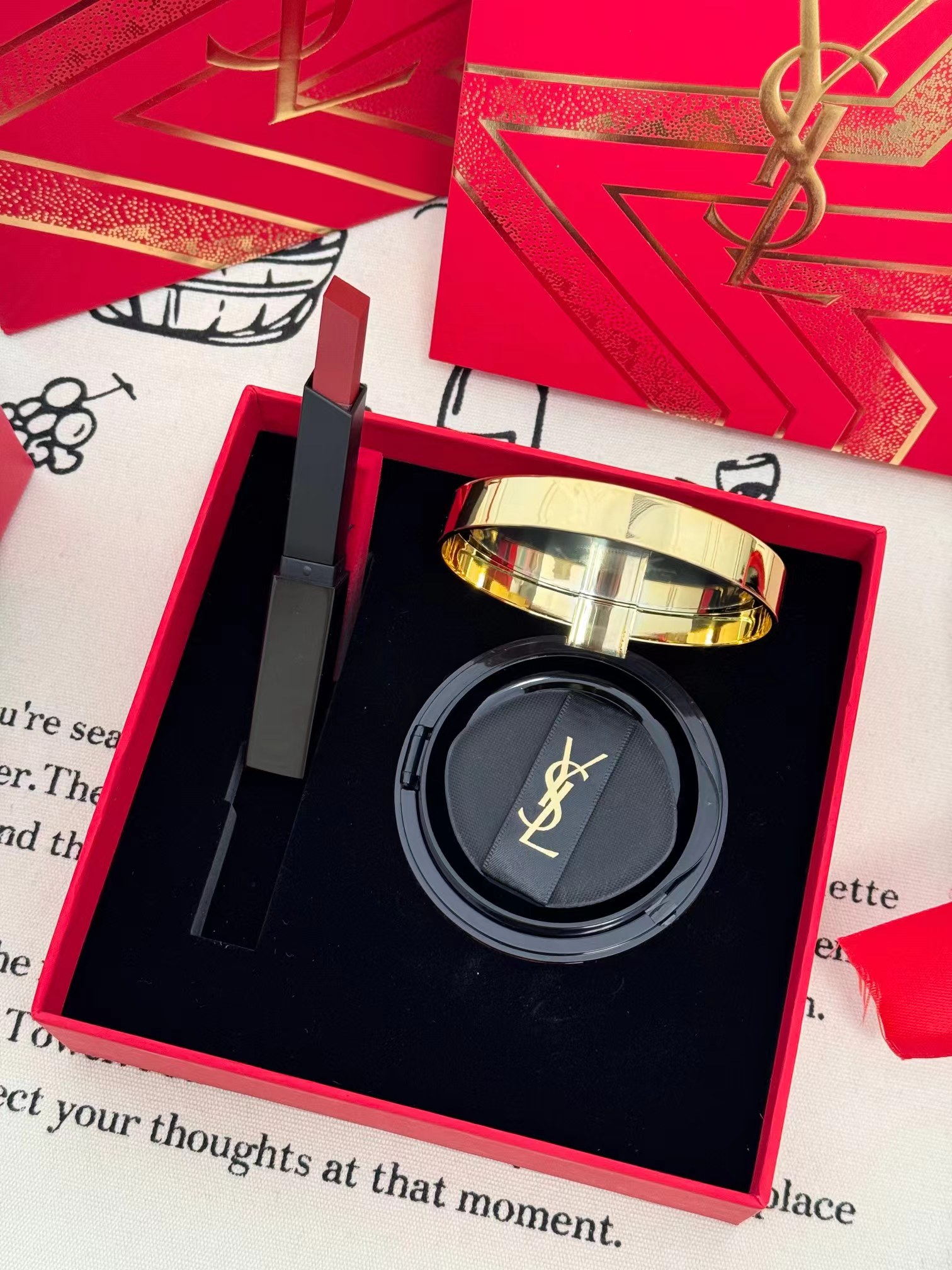 内含:红色云朵气垫(色号默认随机配) 红丝绒口红#1966一支 贺卡