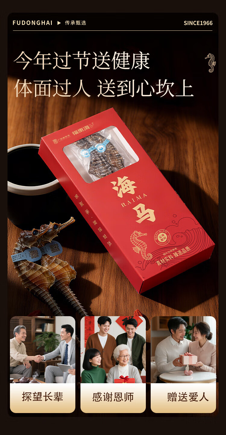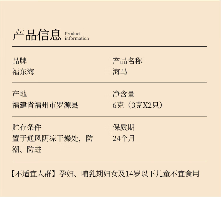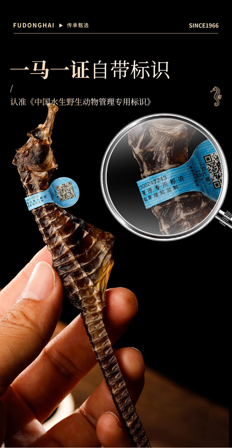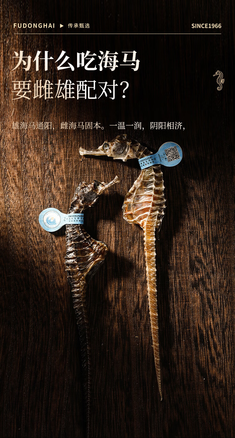 福东海 海马6克 一公一母海马干煲汤泡酒药材料