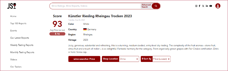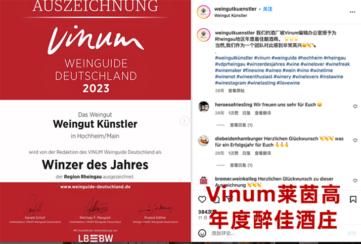 昆斯特勒酒庄(Weingut Künstler)始于1648年,德国鼎级葡萄酒联盟VDP成员之一,曾被《世界葡萄酒地图》一书收录,也是鲜有获得“三个酔佳”(酔佳酒庄、酔佳酿酒师、酔佳酒款)的老牌名庄之一。