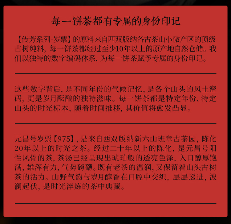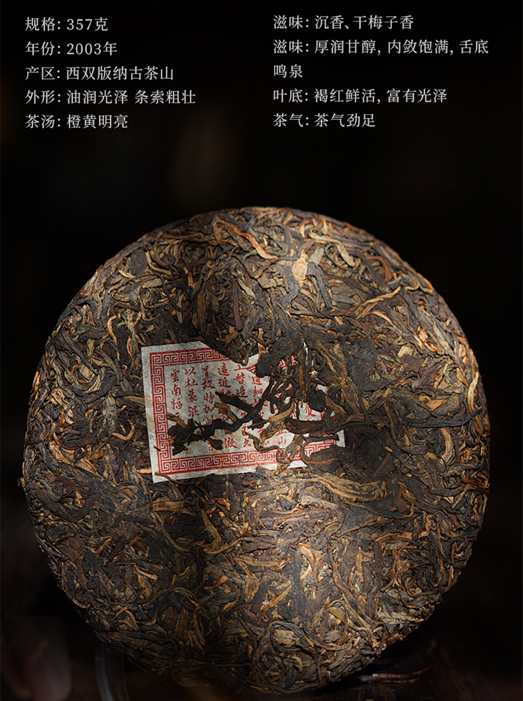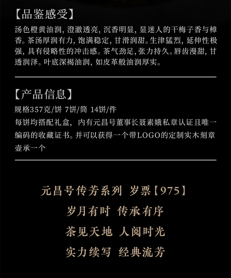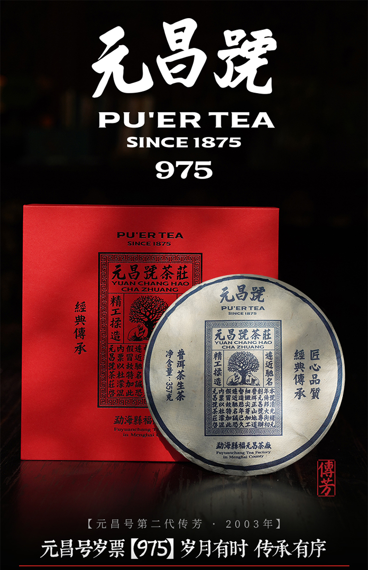 【元昌号】传芳系列岁票975传世经典2003年古树357g生饼