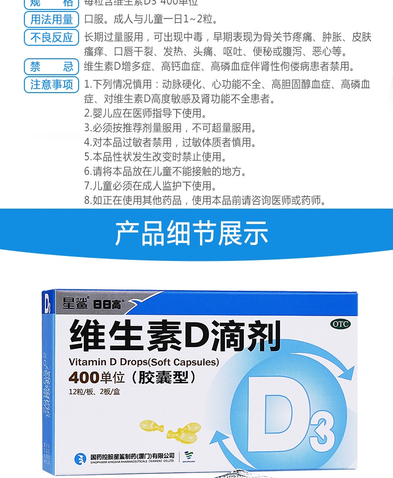 星鲨维生素D滴剂胶囊型24粒儿童婴儿成人预防佝偻骨质疏松