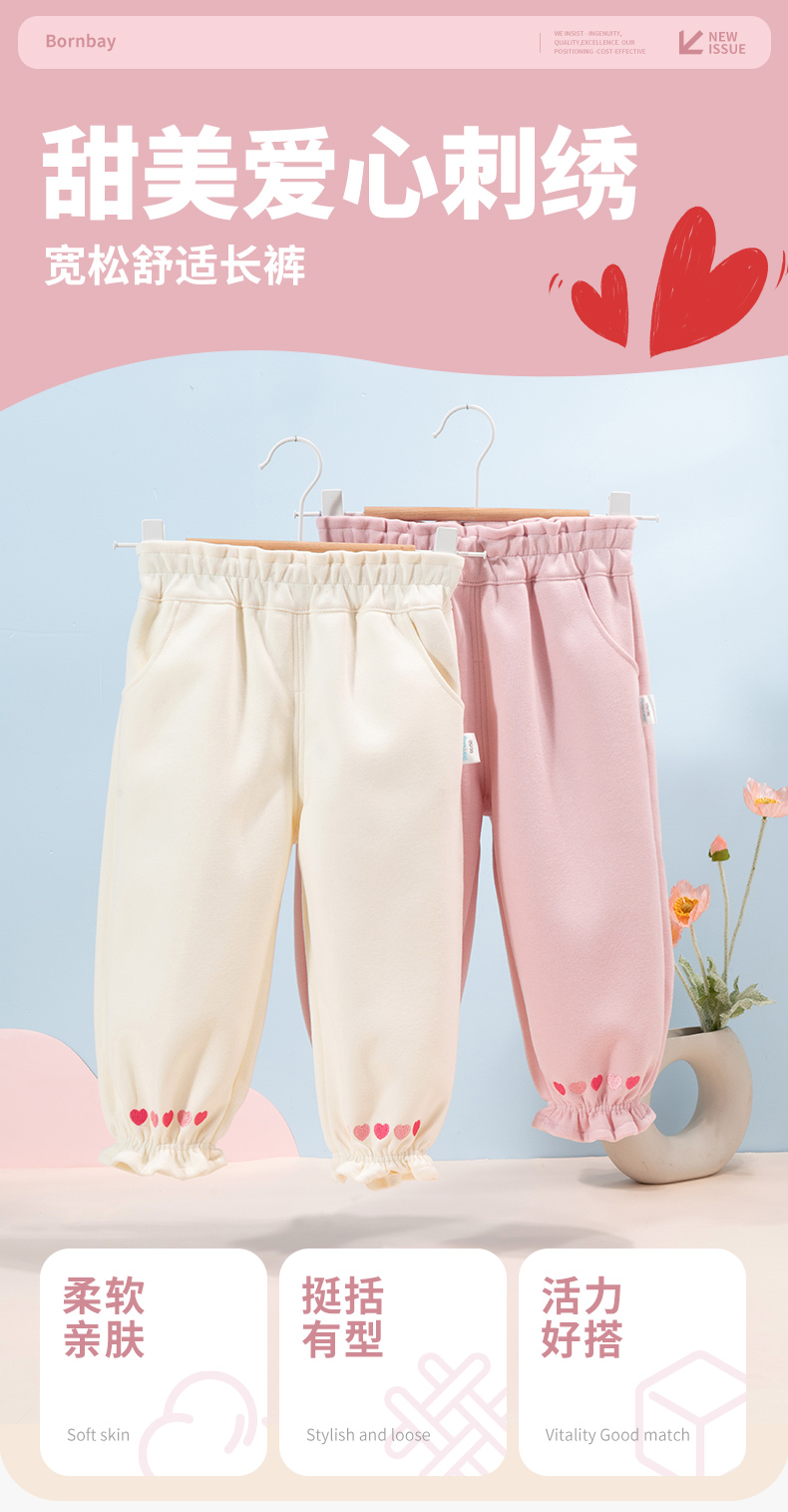贝贝怡【复合牛奶丝】2024秋装新款女童裤子休闲简约甜酷亲肤长裤ZB3DK042