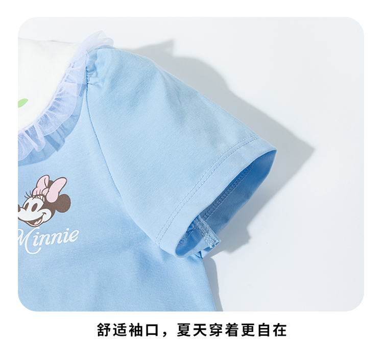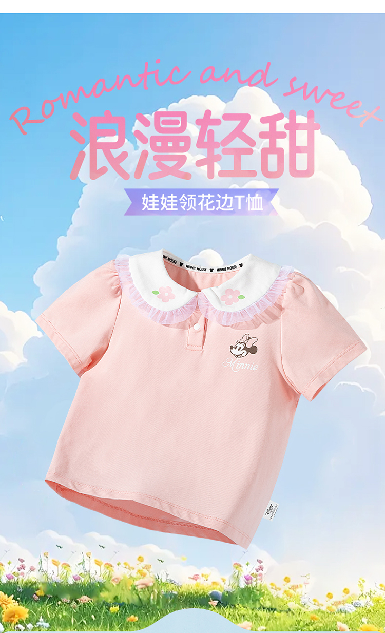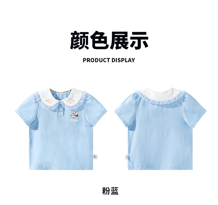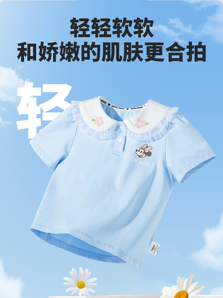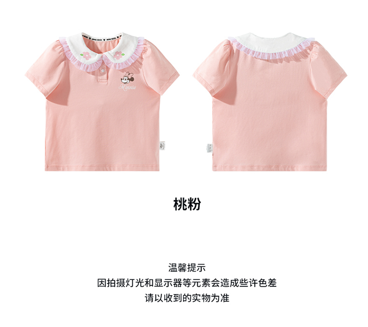 迪士尼【米妮凉感T恤】25夏季新款女童娃娃领冰感短袖T恤休闲上衣ZD2ES023
