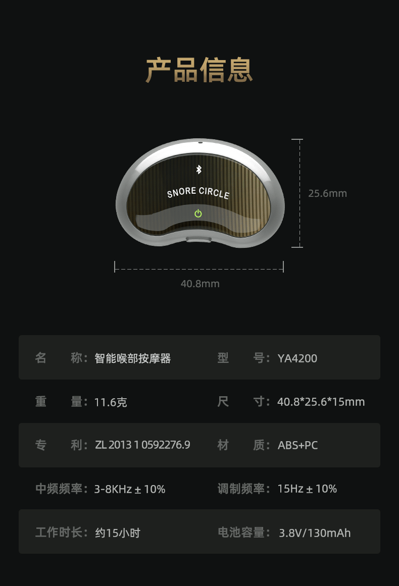 【打鼾者福音、佩戴舒适】云中飞呼噜圈 YA4200-智能喉部脉冲止鼾器(升级款)