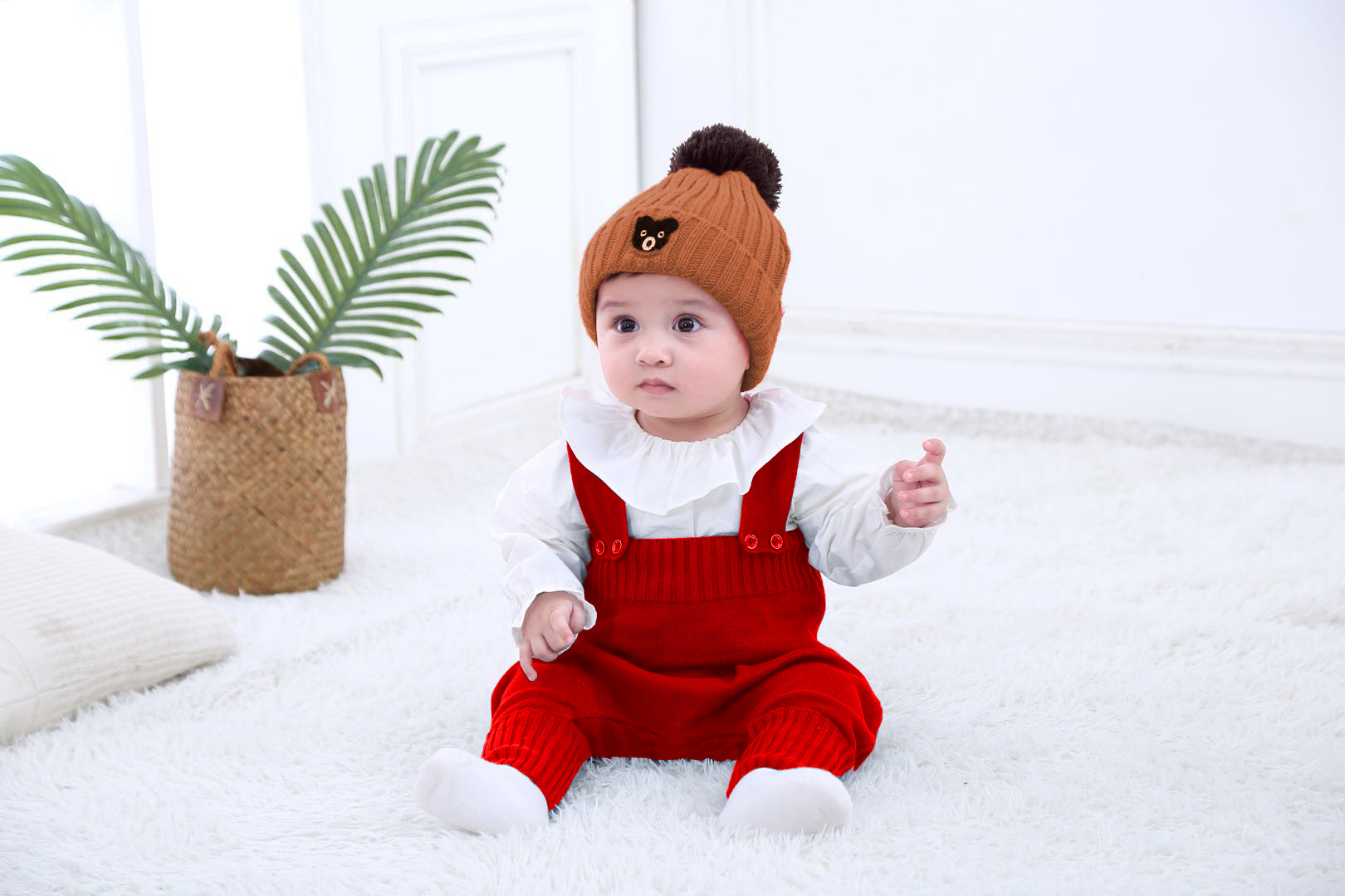 【婴儿背带裤 舒适亲肤】春秋可开档0-1-2岁男女宝宝大PP毛线衣服针织纯棉裤子