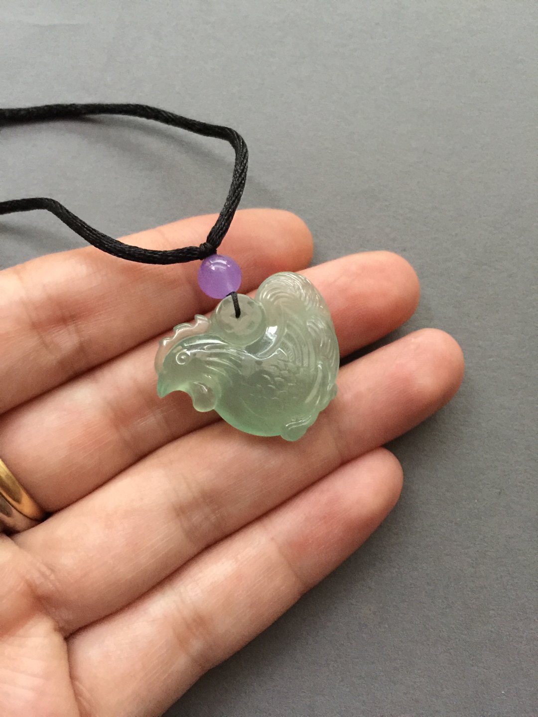 属鸡必备,翡翠冰种淡晴水大公鸡,28*23.2*7mm。种水晶莹剔透,荧光四射,丝绸般柔滑的质感,手工精雕,刻画精致细腻。不容错过的宝贝,才小四价位,现在的行情你去哪里找