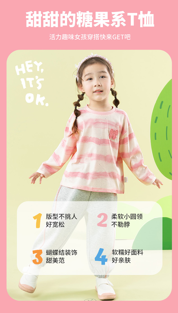 ZB1ES001贝贝怡女童长袖T恤儿童衣服宝宝上衣秋装装婴儿纯棉中小童童装女