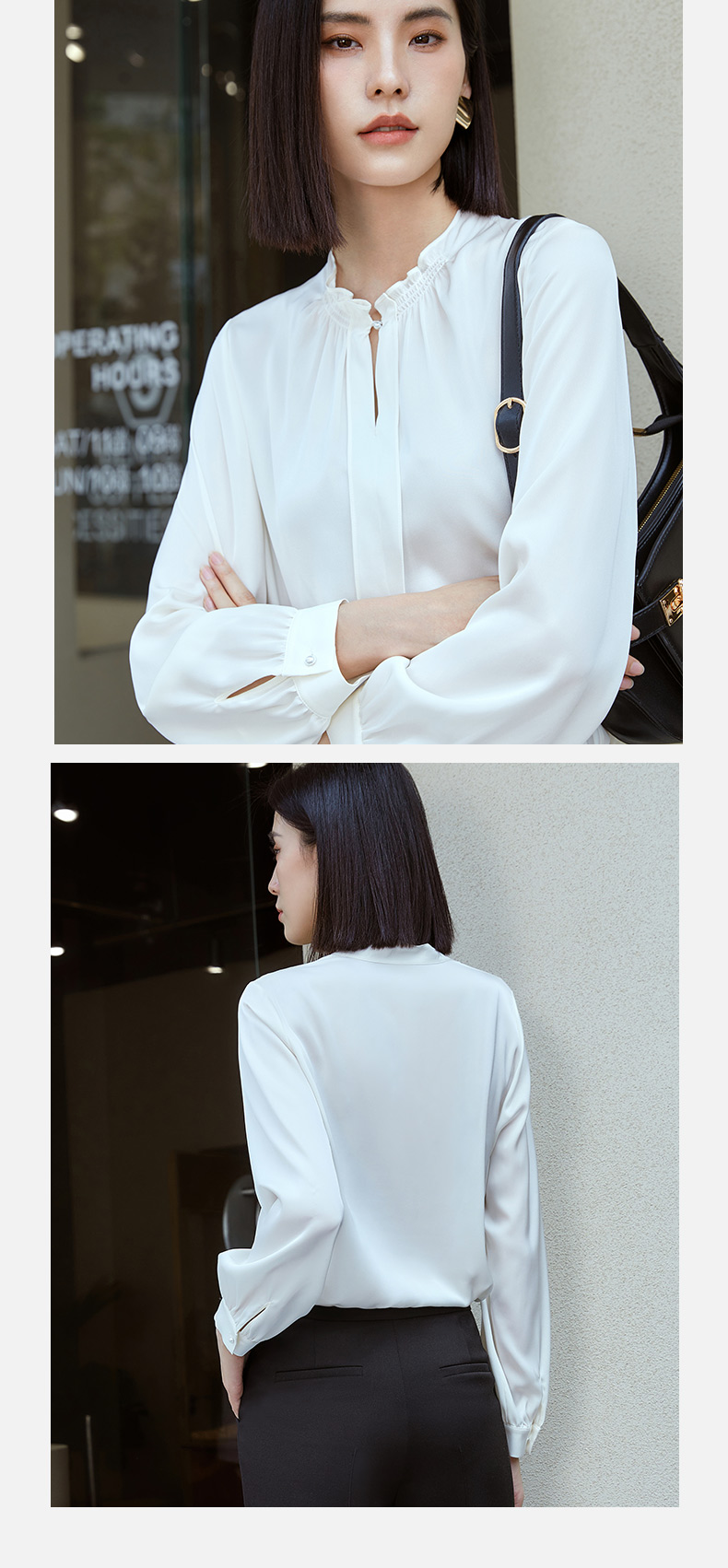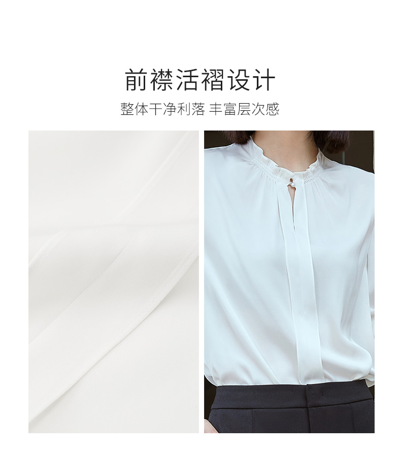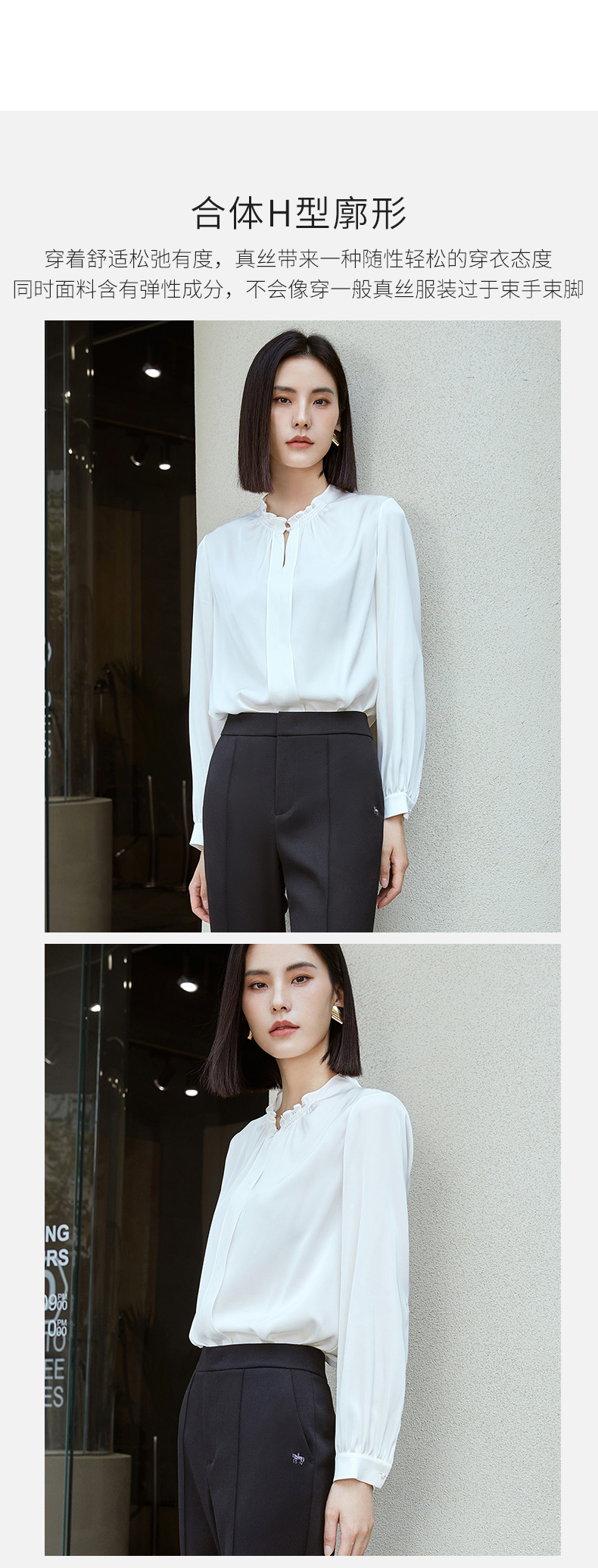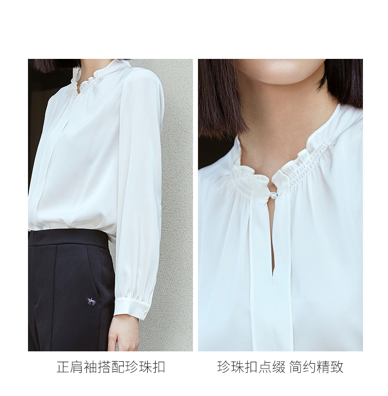玳莎立领真丝衬衫女2023年秋季新款白色通勤设计感衬衣桑蚕丝上衣 DC31306