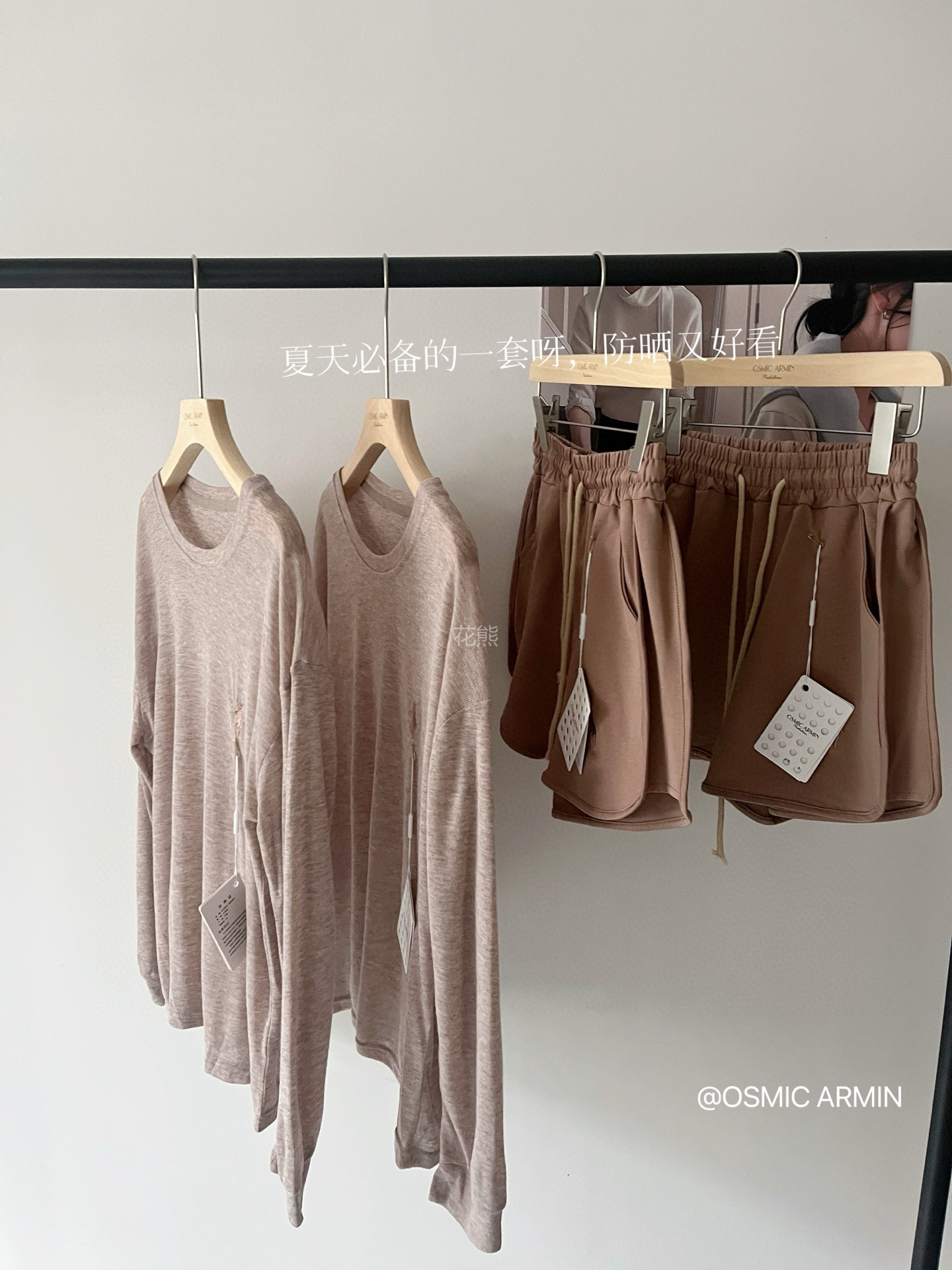 【OSMIC ARMIN拉夫燕麦长袖套装】整套属于婴幼儿的面料 上衣防晒又轻薄 短裤内里毛圈材质 实用性超强独一无二的燕麦色