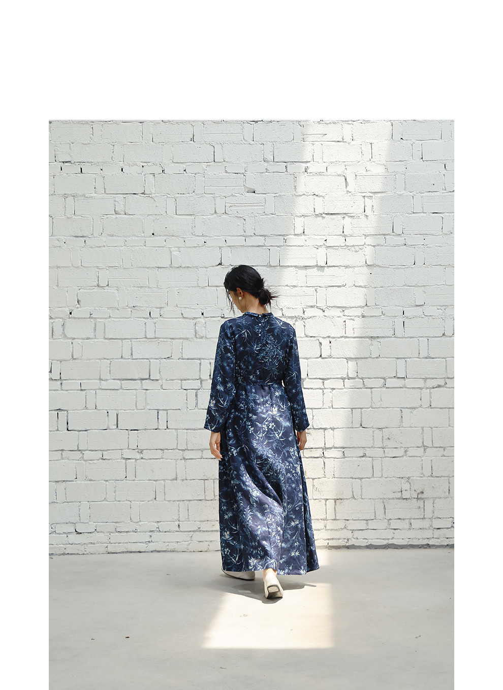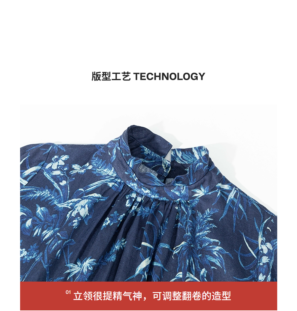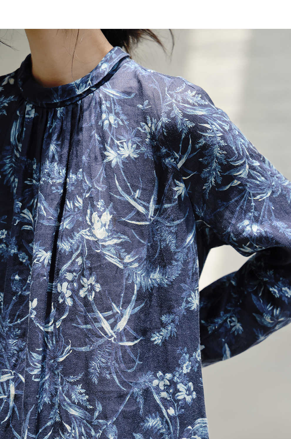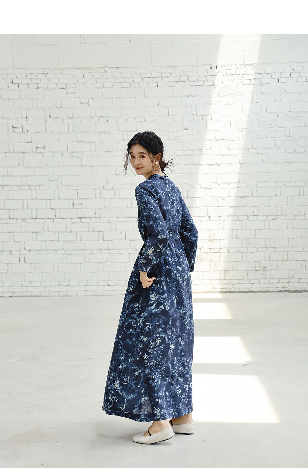 绽放旅行女374朵/【莫兰迪系列】双支亚麻底布印花立领长袖连衣裙