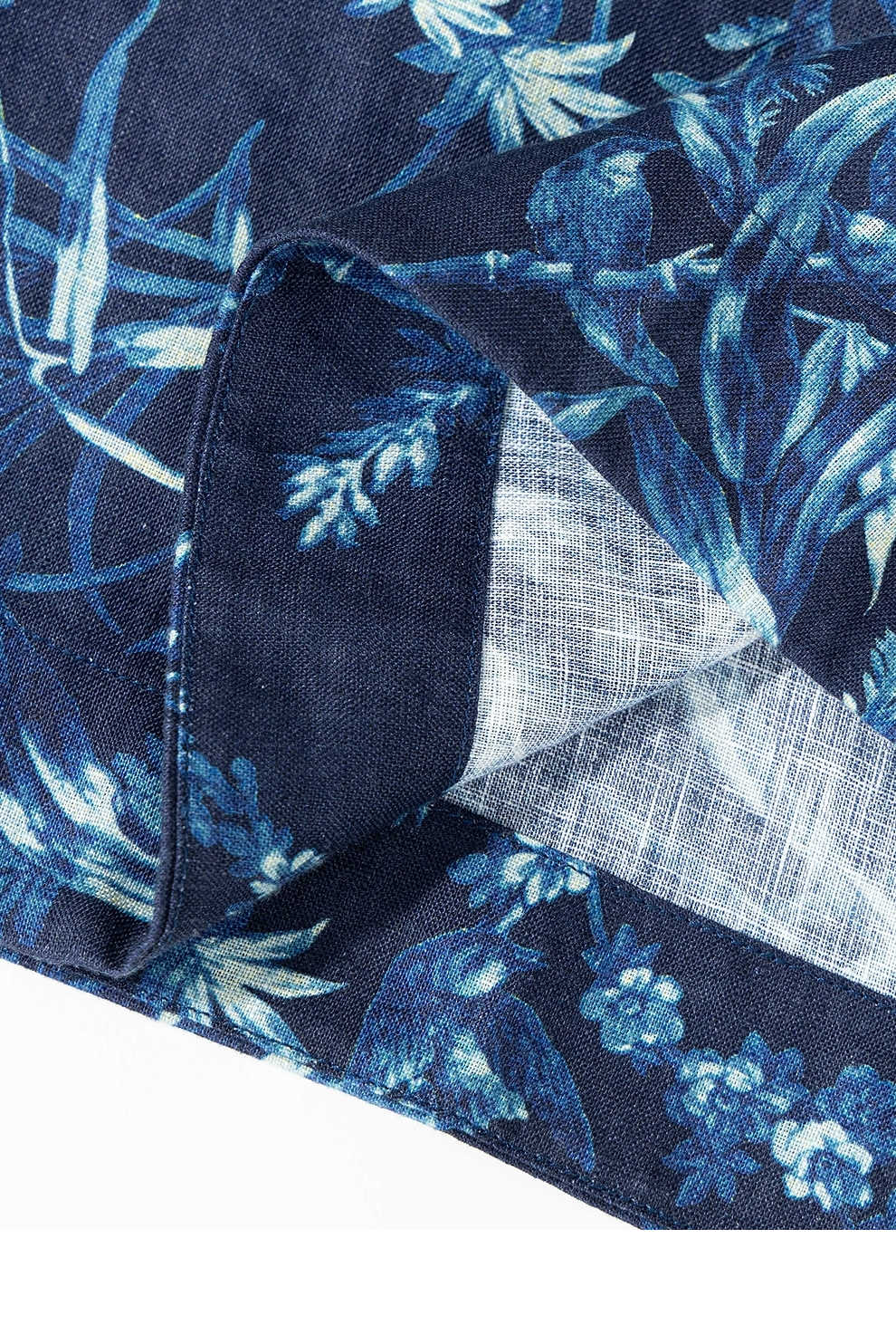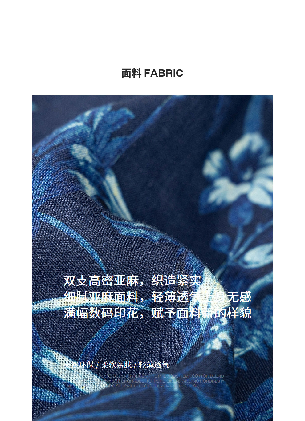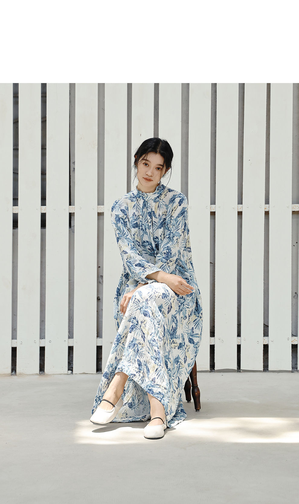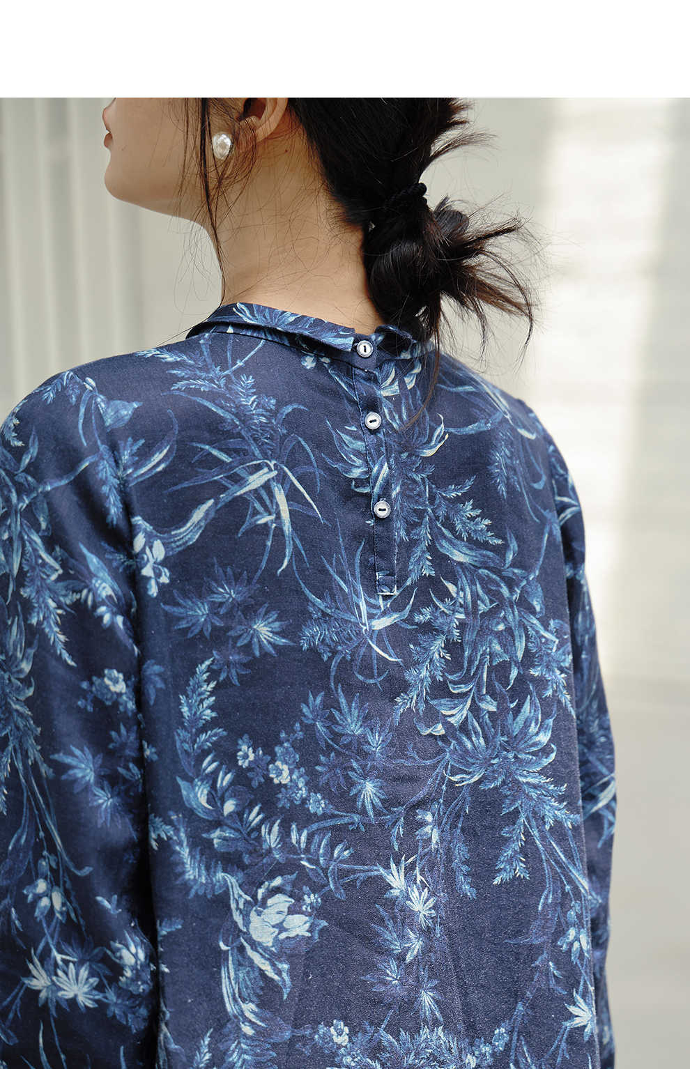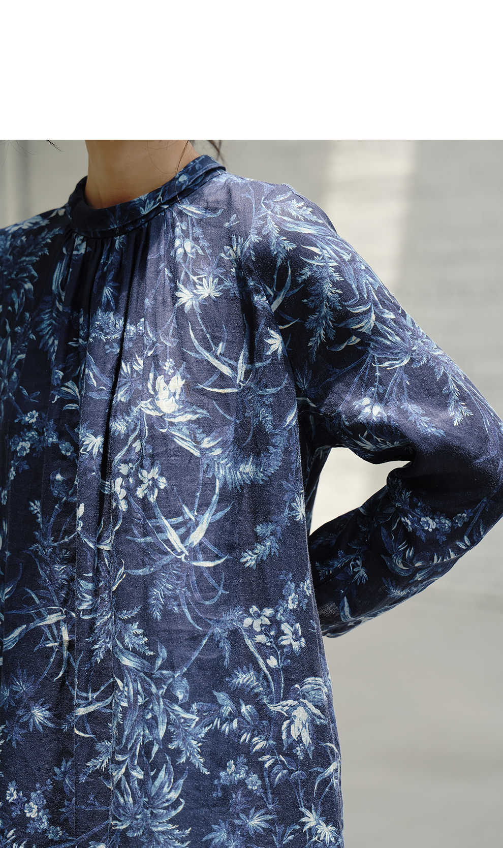 绽放旅行女374朵/【莫兰迪系列】双支亚麻底布印花立领长袖连衣裙