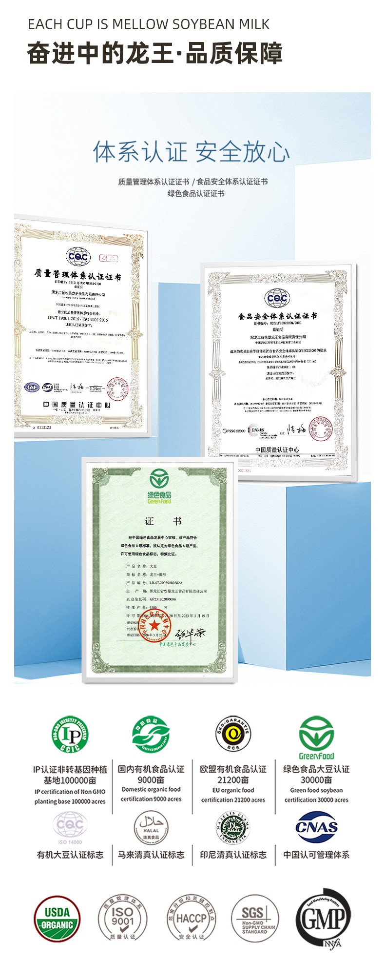 龙王食品是一家专业从事大豆制品原材料加工与生产的食品企业,坐落于享有“黑土明珠”美誉之称的黑龙江省绥化境内,20年来专注非转基因大豆,产品远销海外30多个国家及地区