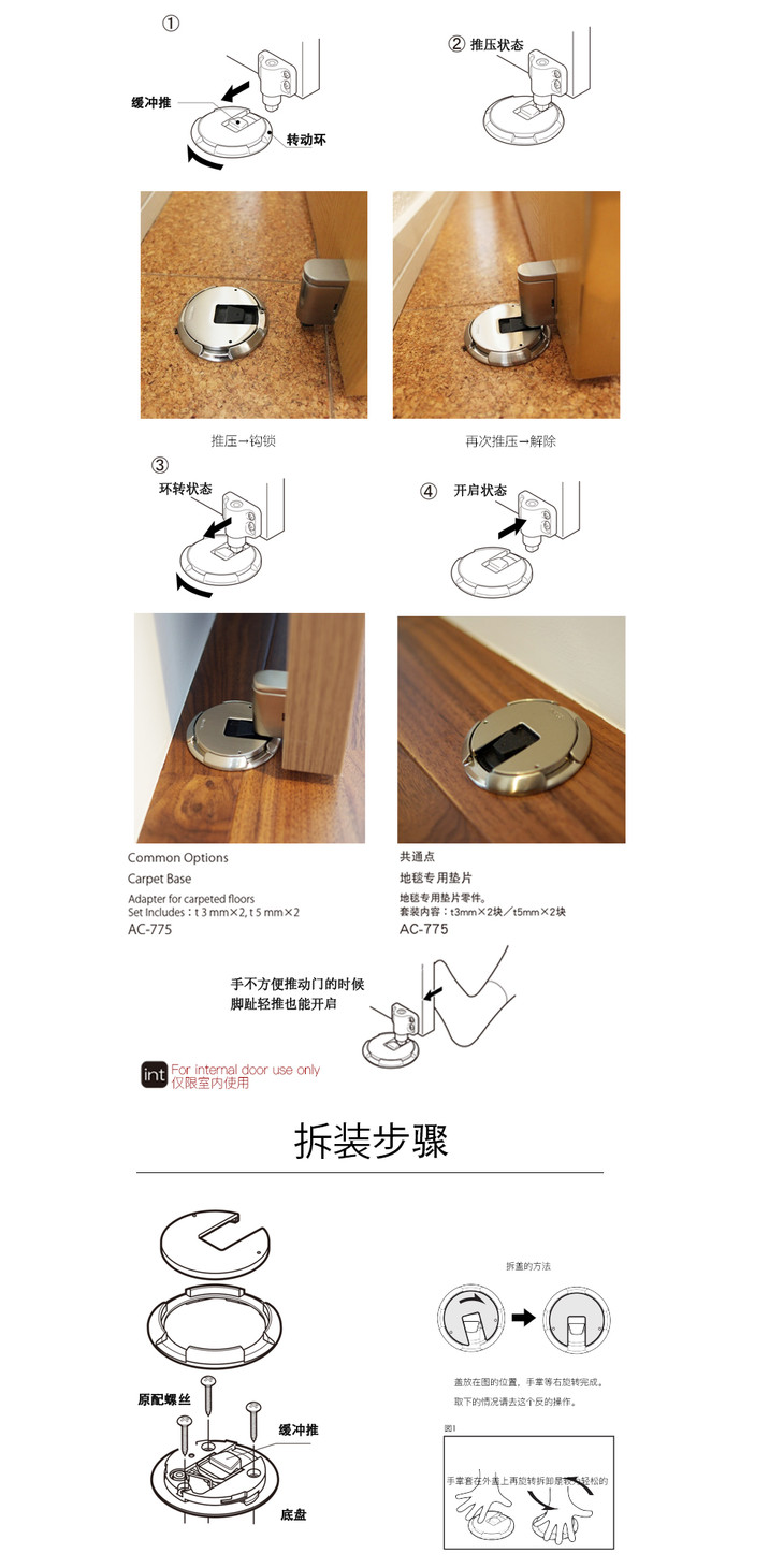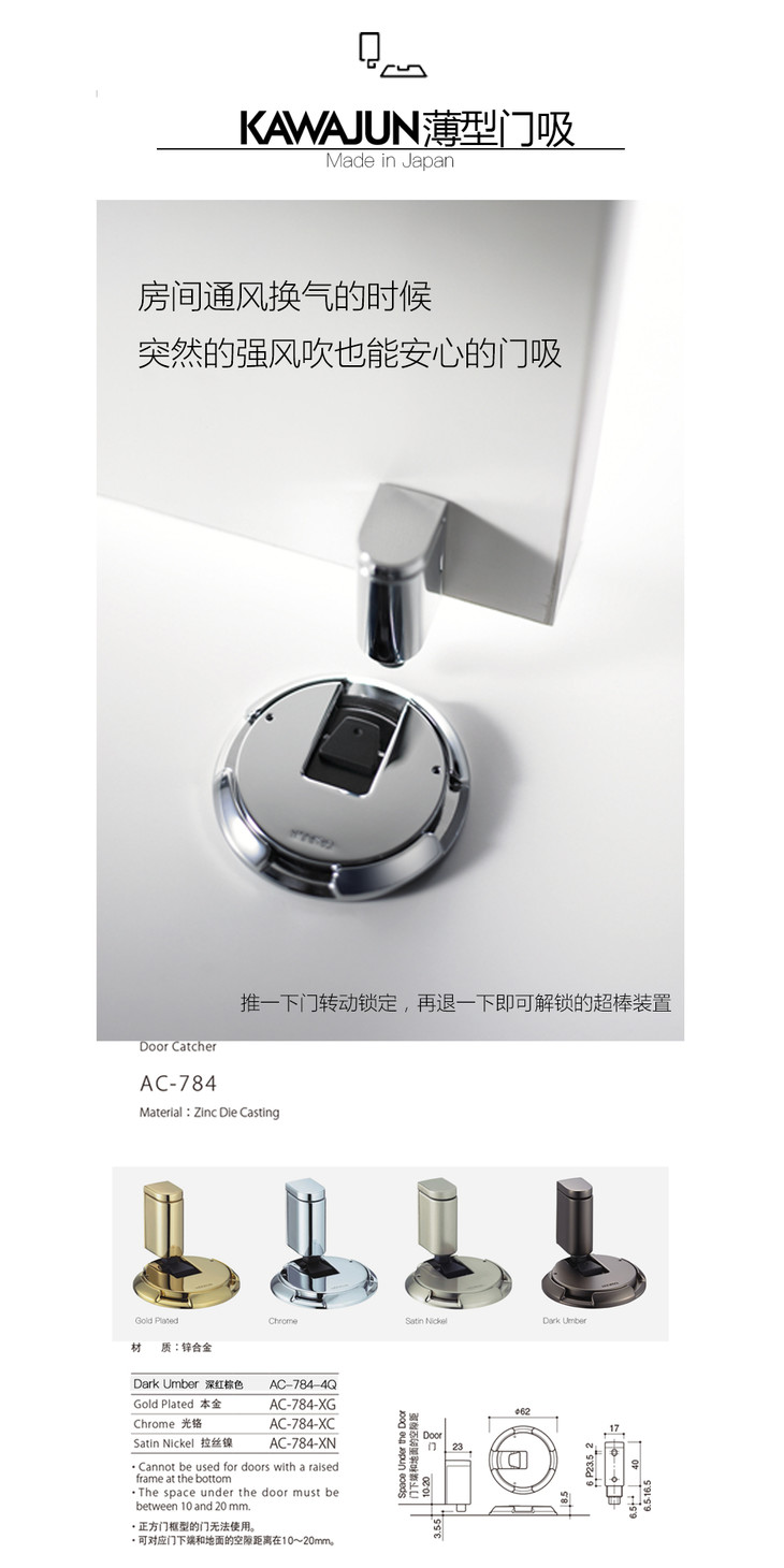 日本KAWAJUN五金无磁门碰机械式门吸拉丝镍