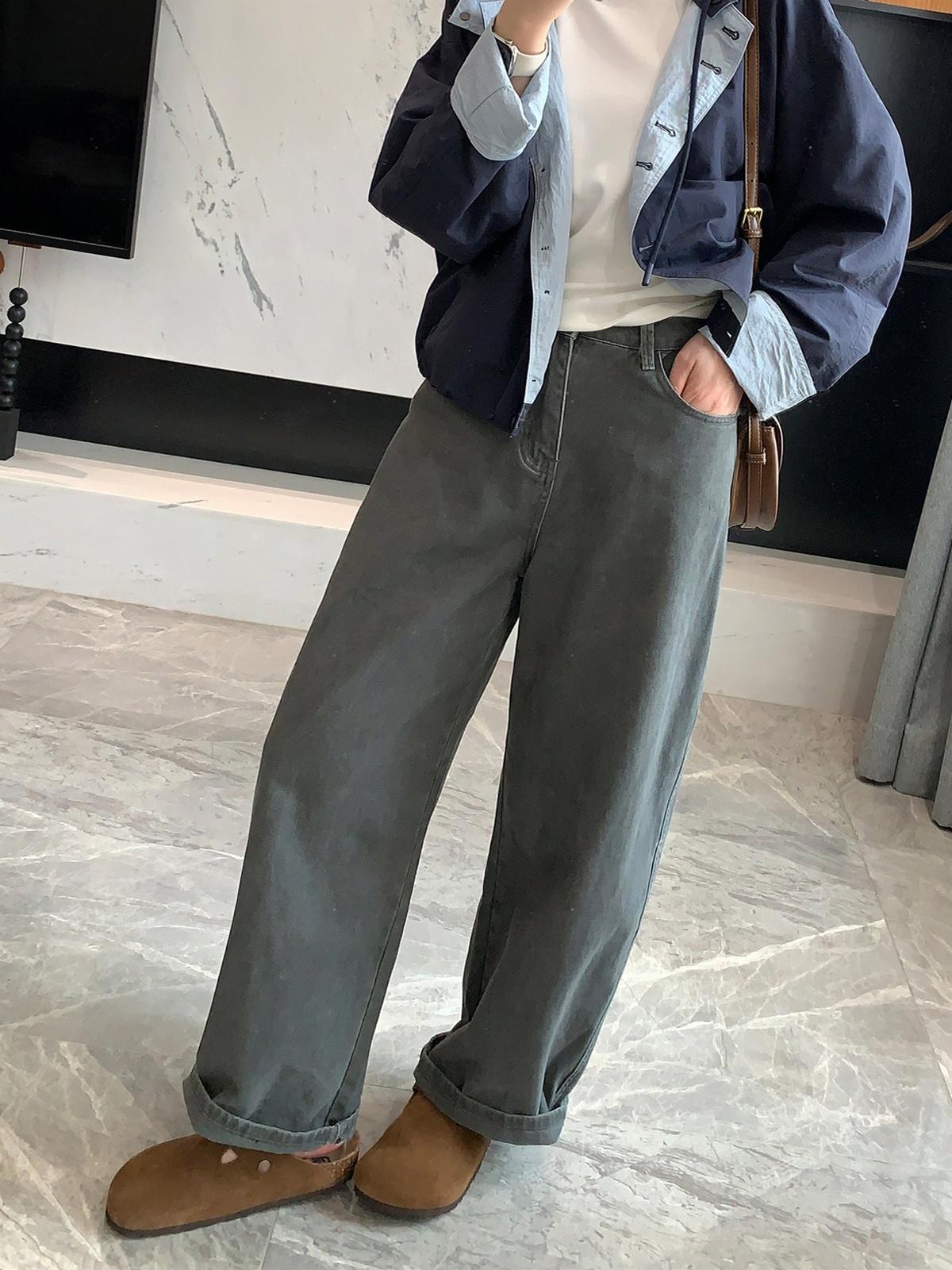 重工炒盐牛仔弯刀裤!洋气烟灰色森海棉高腰休闲长裤2025秋款! 商品图1
