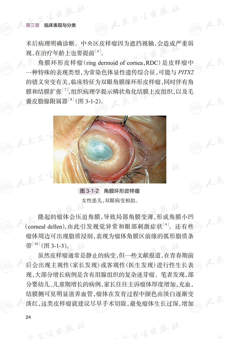 ③ 本书集合角膜医生、儿童斜弱视医生、视光医生等多学科的专业视角,对角膜皮样瘤这一疾病进行了系统且全面剖析。