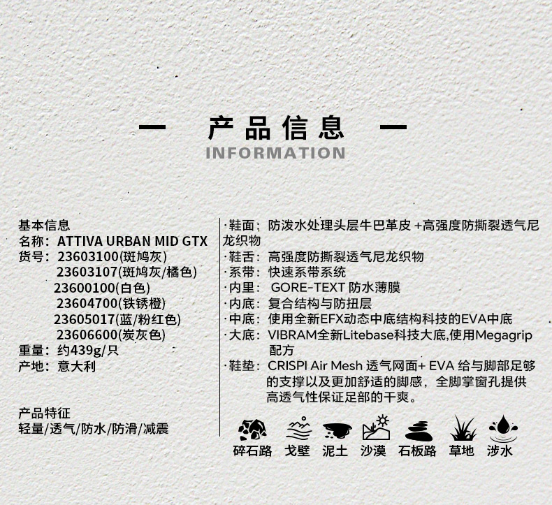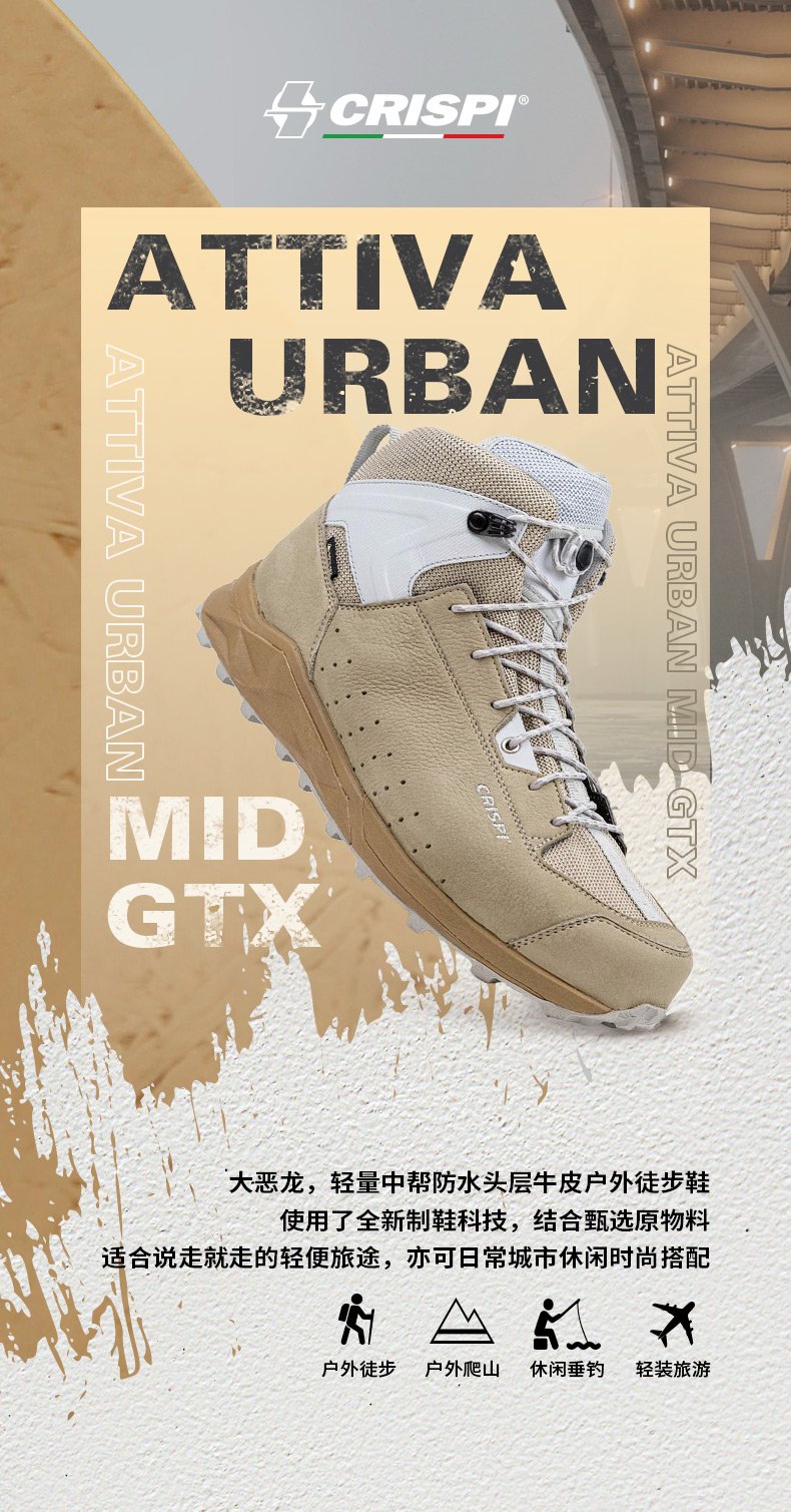 CRISPI意大利恶龙春秋防水防滑徒步登山鞋靴男女Attiva Urban Mid 23603107