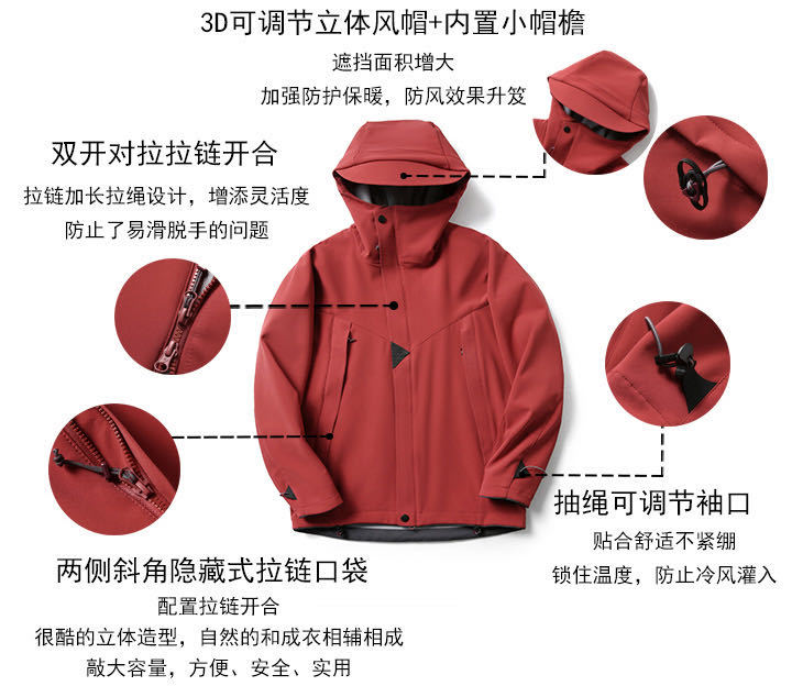 硬核户外!2025鼠家3M反光压胶男女款户外高强度软壳连帽冲锋夹克!