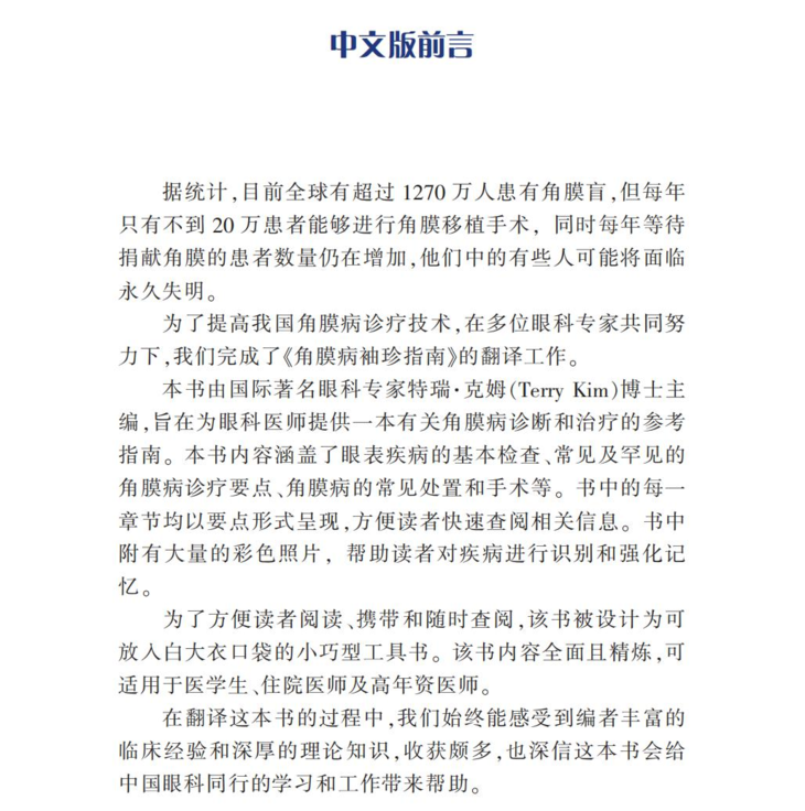 这本书以图文并茂。言简意赅的形式,系统地介绍了角膜病的方方面面。在书中,你可以找到从常见到罕见的角膜疾病,学会各种手术技巧和处理方法