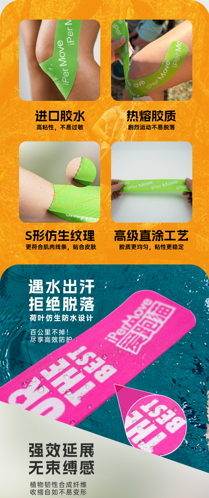 iPerMove肌肉贴运动绷带专业跑步健身膝盖脚踝拉伤贴肌内效贴布