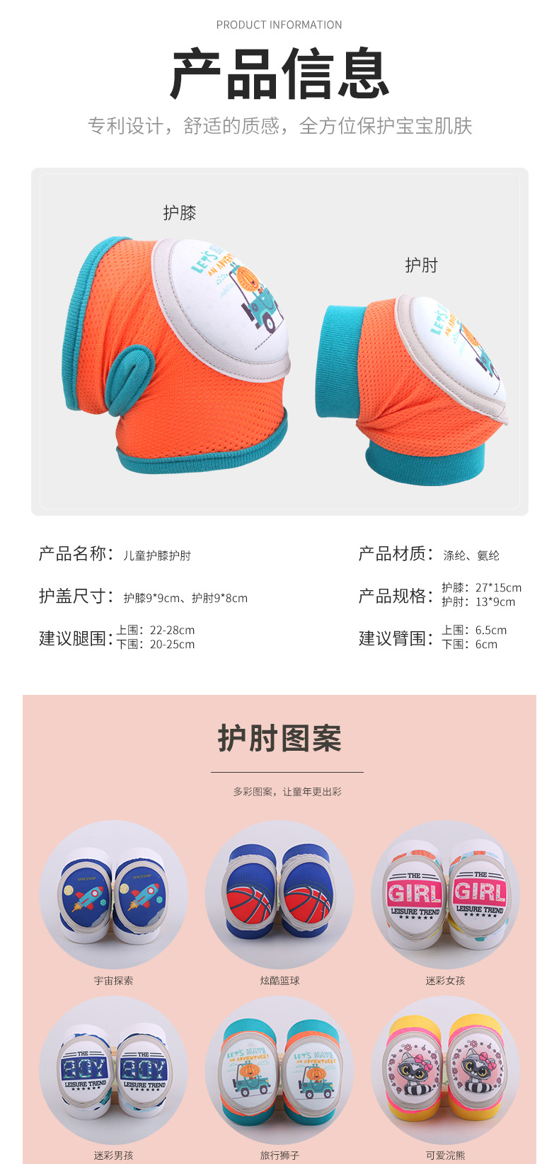 【松紧可调 安全防护!】儿童运动护膝护肘套装婴儿宝宝学步爬行防滑袜套骑行防护护具