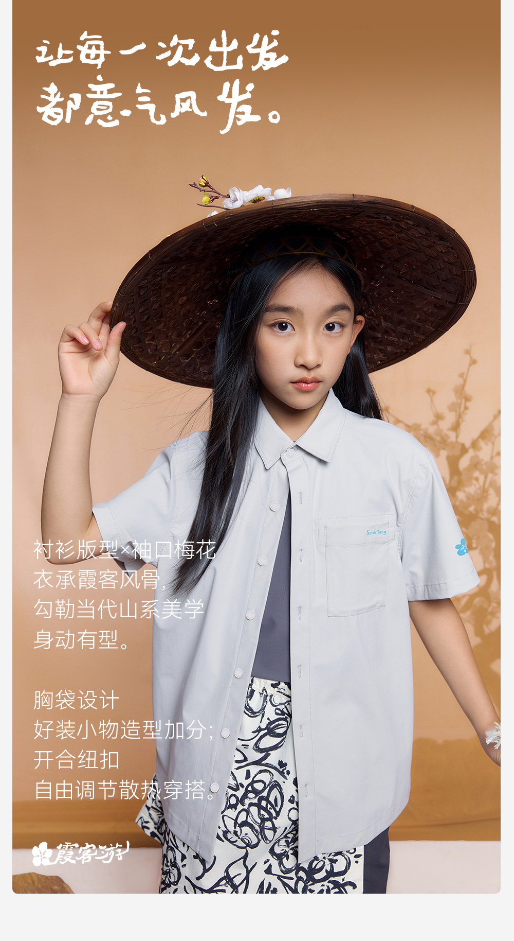 【山系短袖衬衫】森林棠26夏款霞客游挺阔耐磨儿童户外休闲运动衬衫40462370