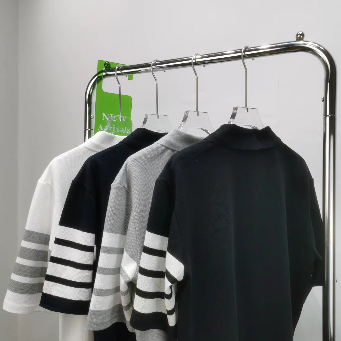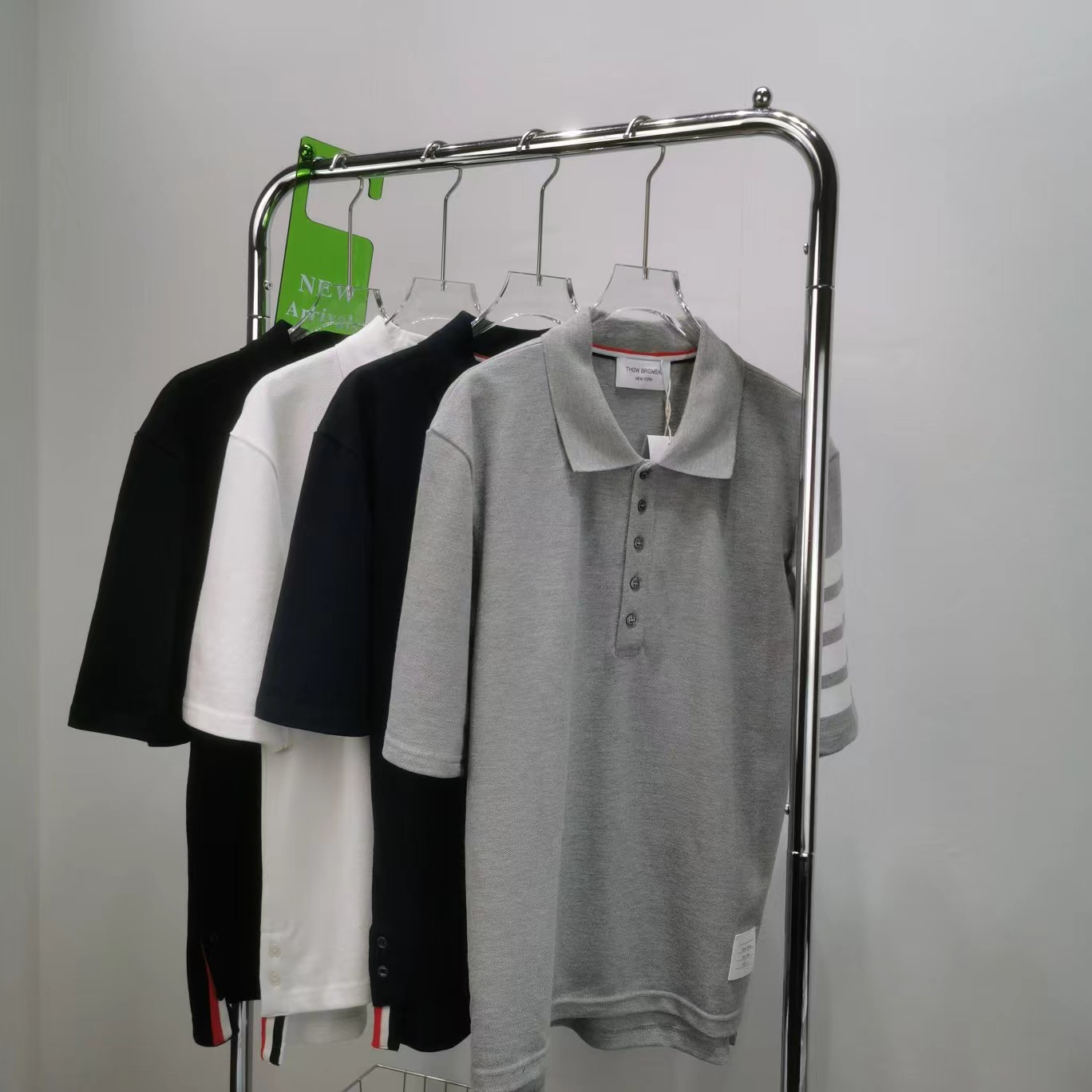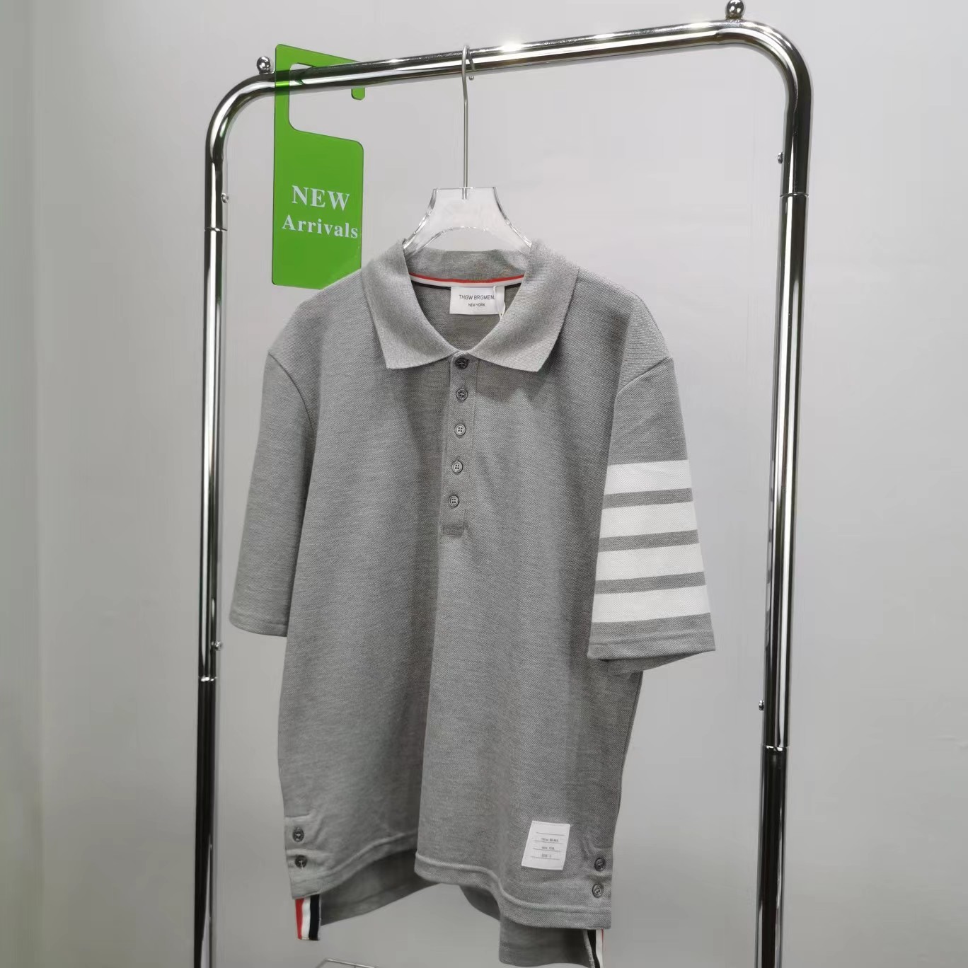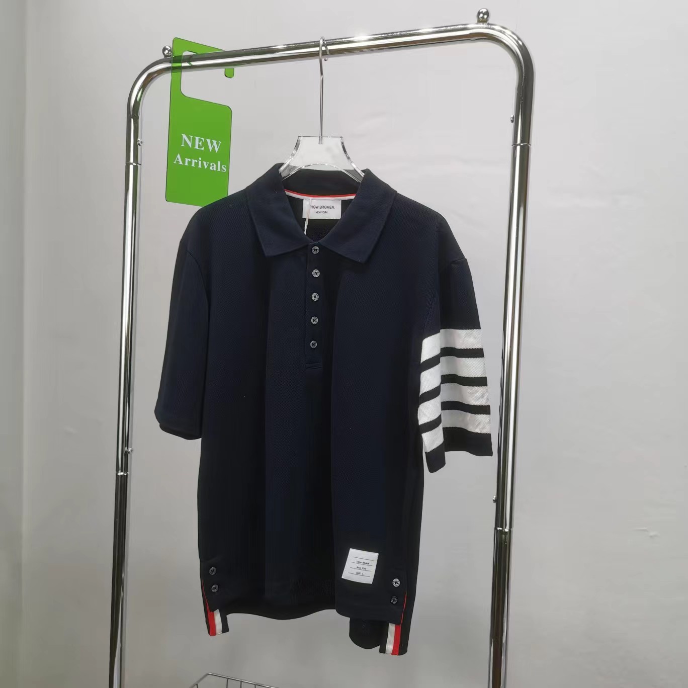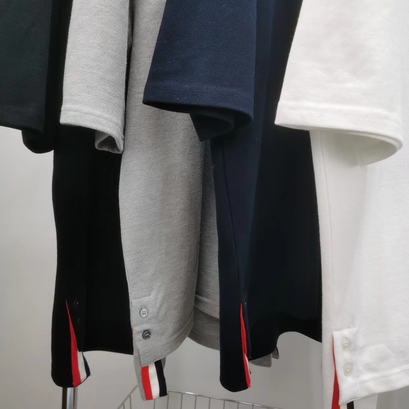 春夏四条纹纯棉短袖POLO衫翻领设计很chic,前卫要考究 翻领亲和力佳,定制珠地棉面料细节感超赞下摆小开叉,以贝壳纽扣扣合 穿着就是要一点TB红白蓝,增加搭配的层次感定制色织珠地棉面料,品质自然高 TB,个性的四条杠条纹元素有着很强的辨识度,绅士装pin牌设计! 男女同款!
