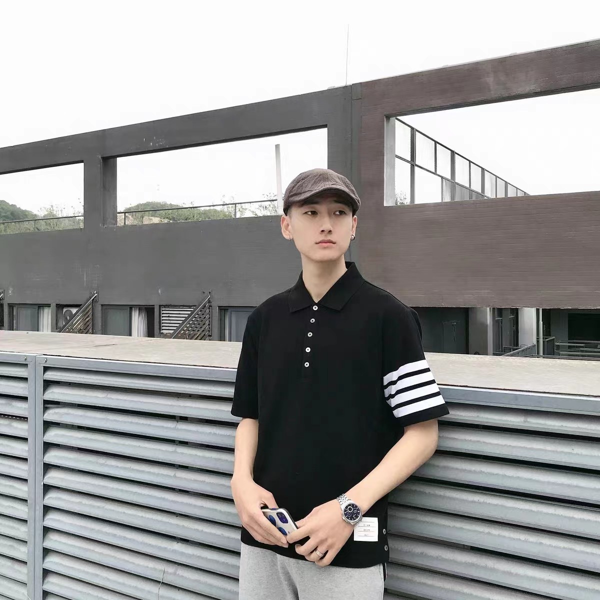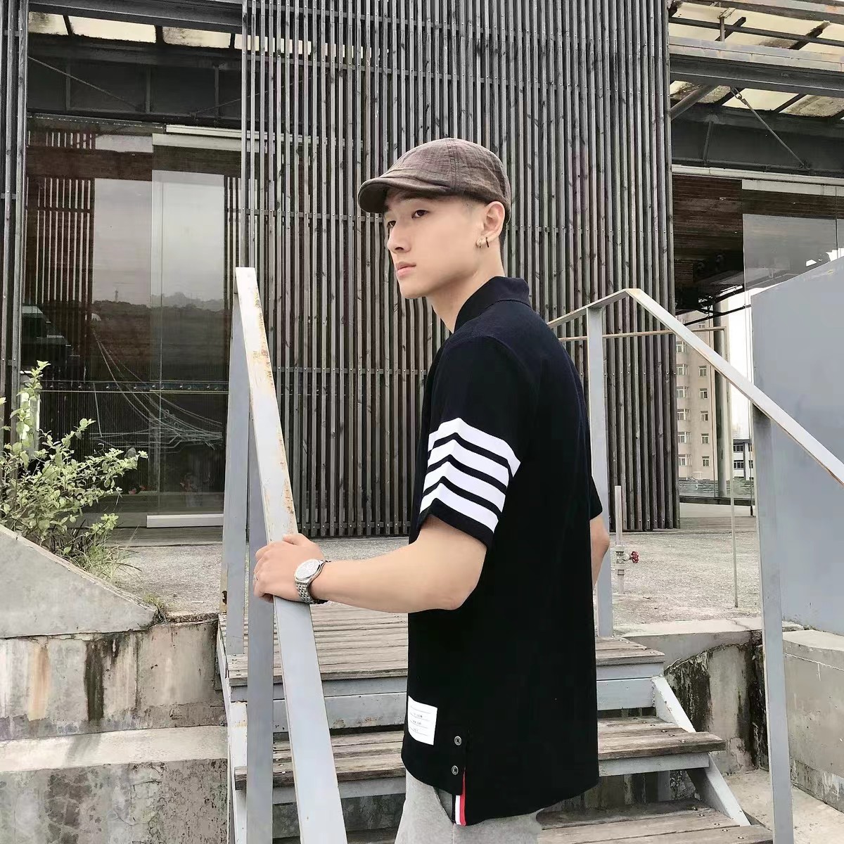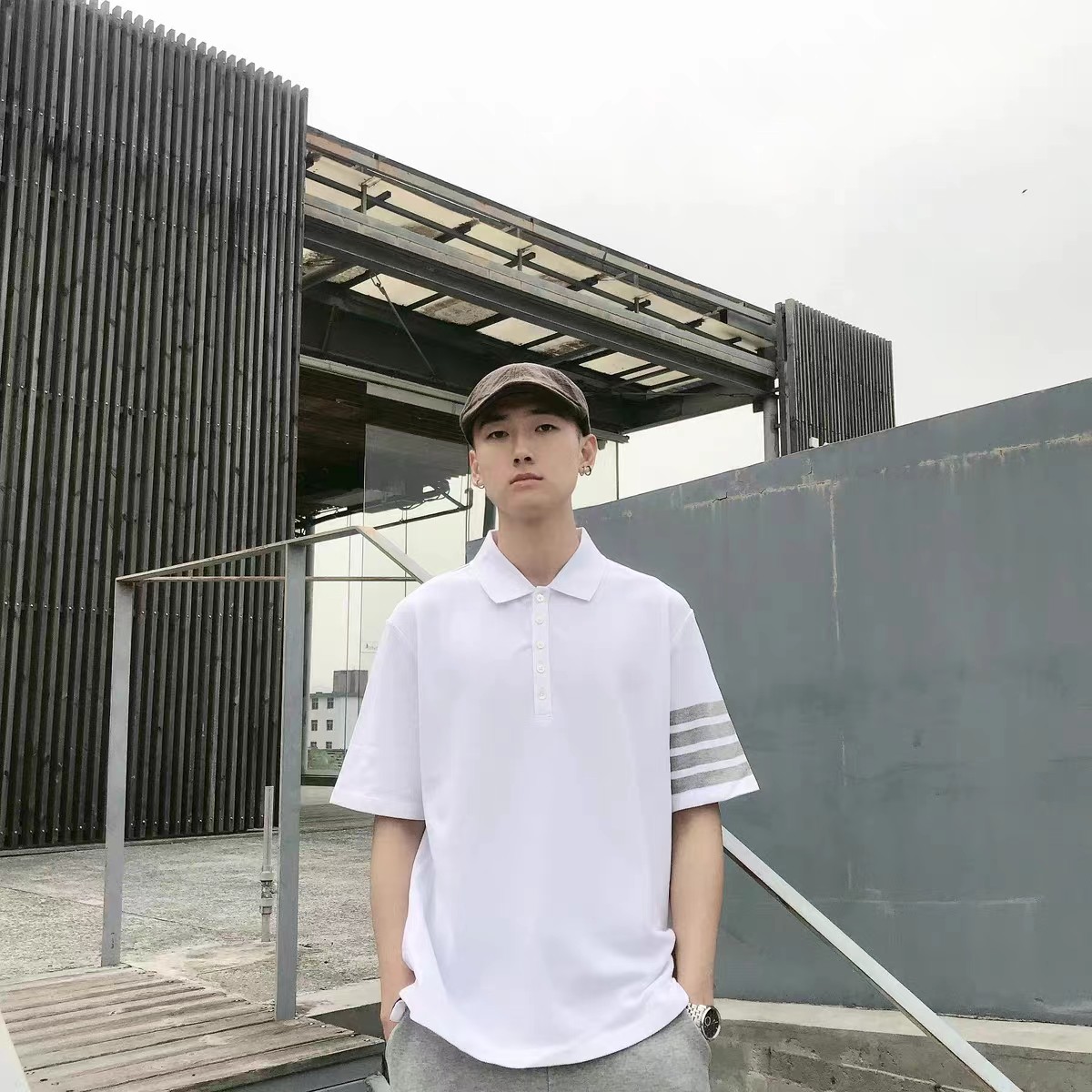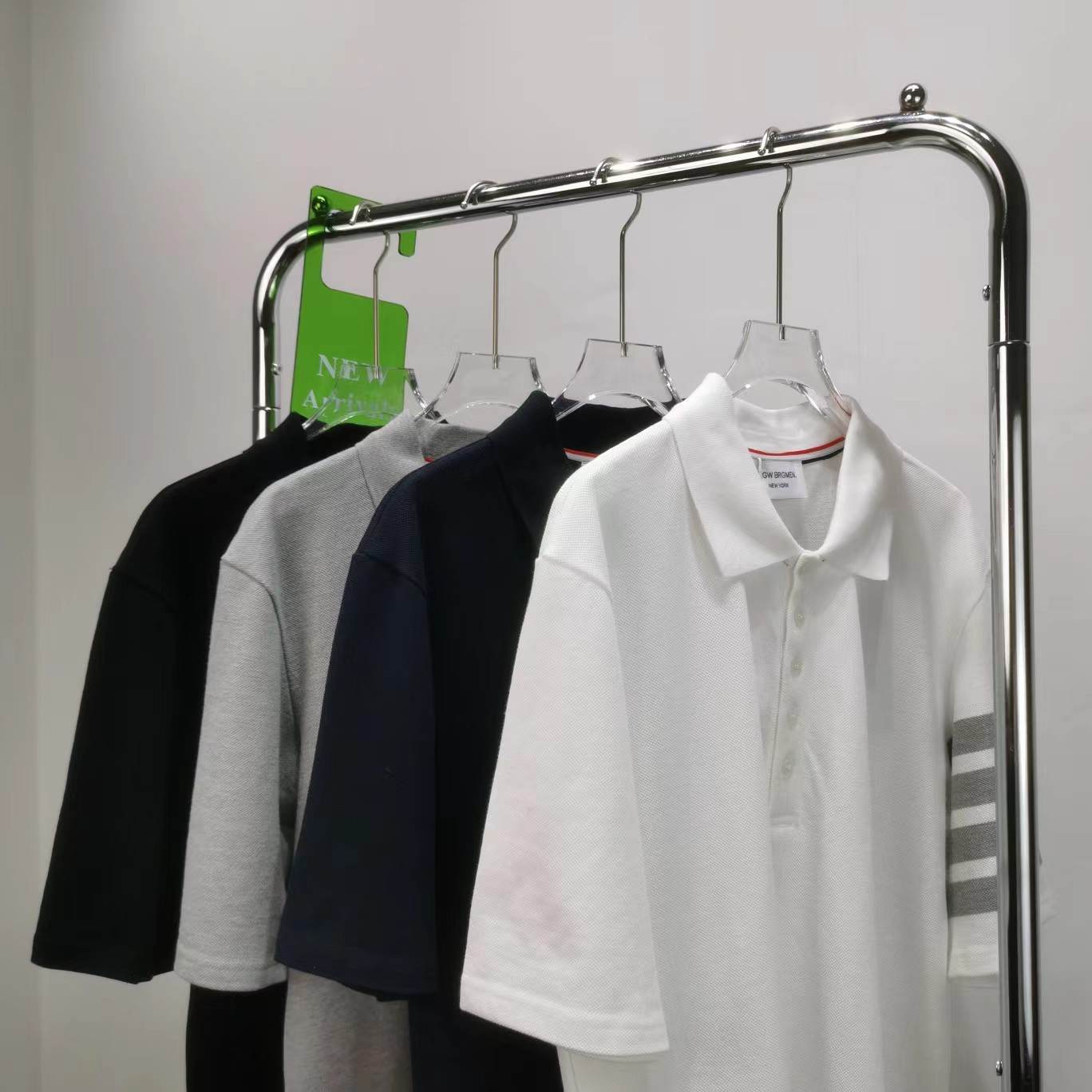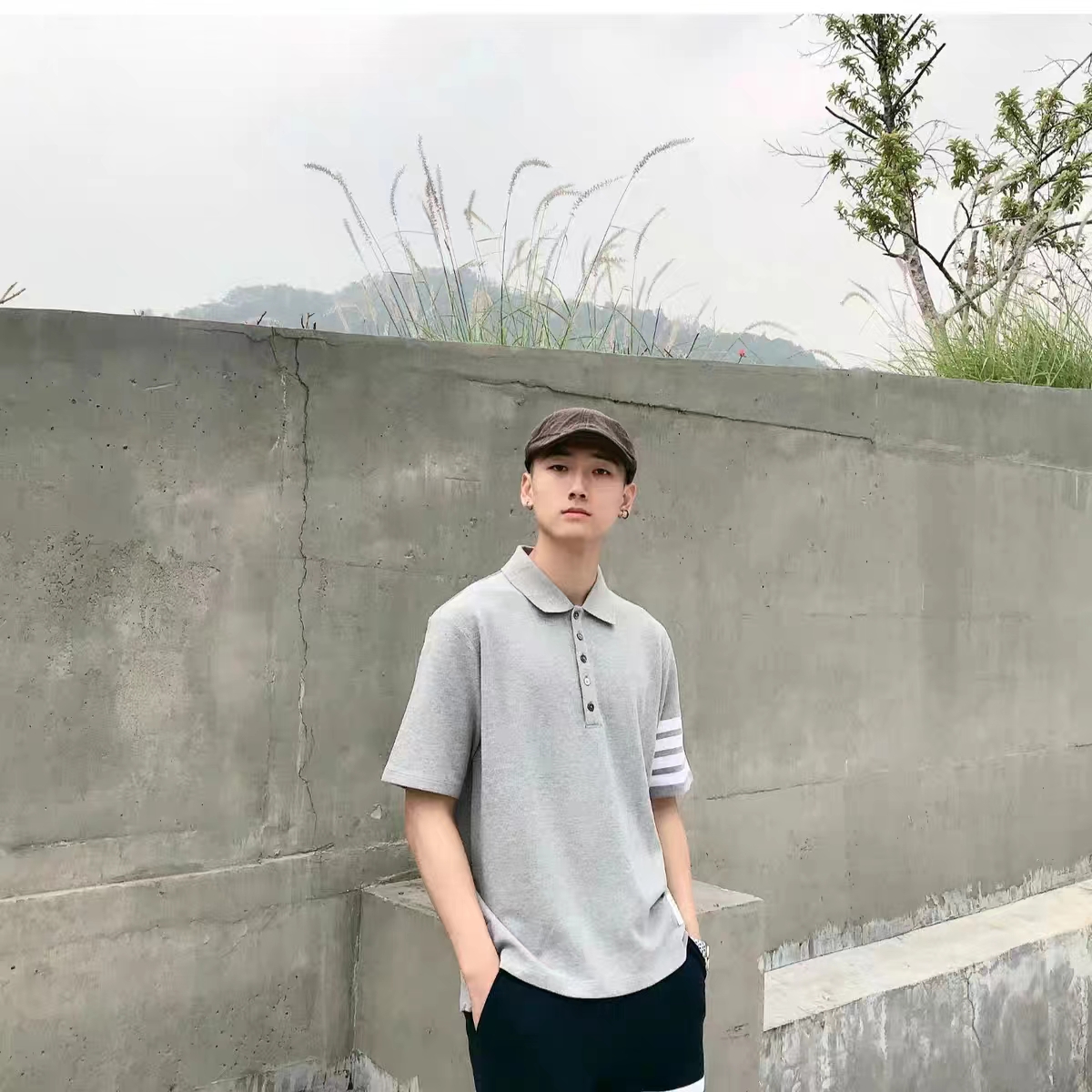 春夏四条纹纯棉短袖POLO衫翻领设计很chic,前卫要考究 翻领亲和力佳,定制珠地棉面料细节感超赞下摆小开叉,以贝壳纽扣扣合 穿着就是要一点TB红白蓝,增加搭配的层次感定制色织珠地棉面料,品质自然高 TB,个性的四条杠条纹元素有着很强的辨识度,绅士装pin牌设计! 男女同款!