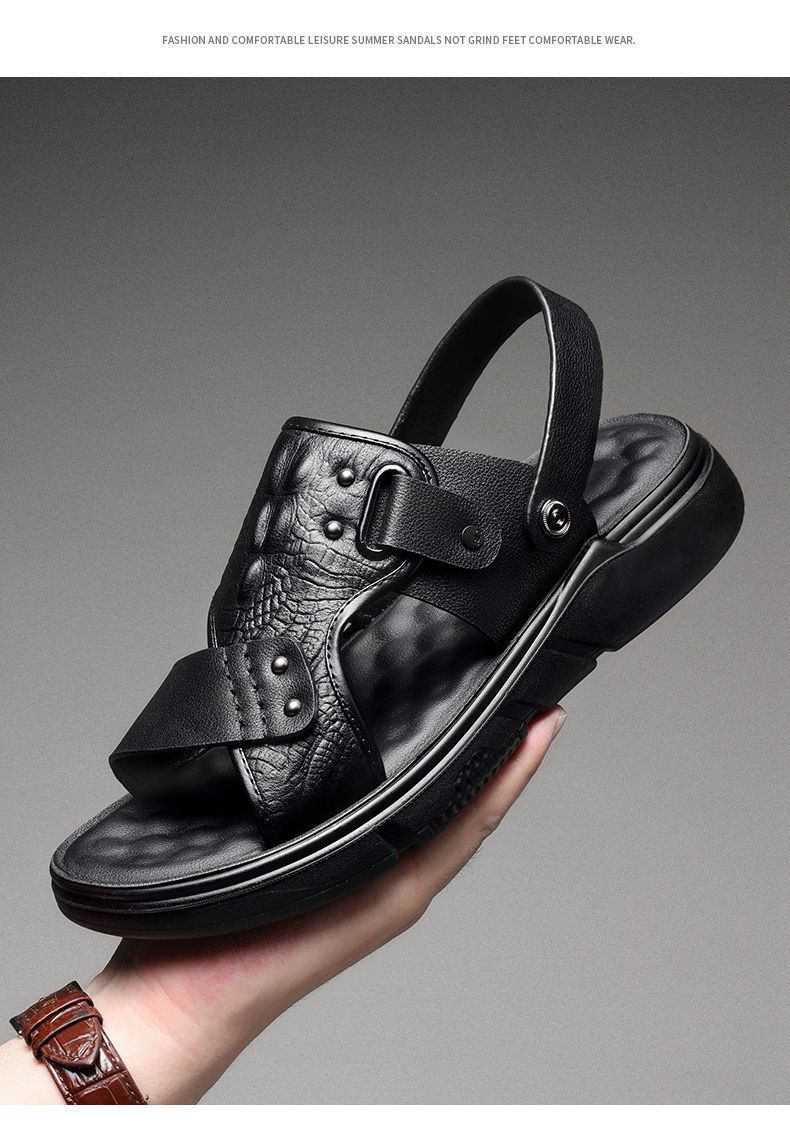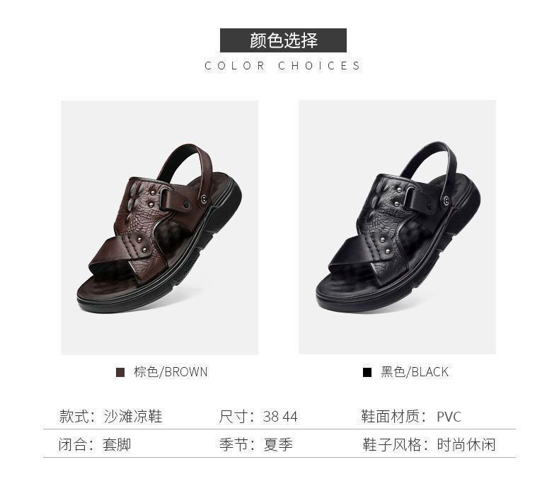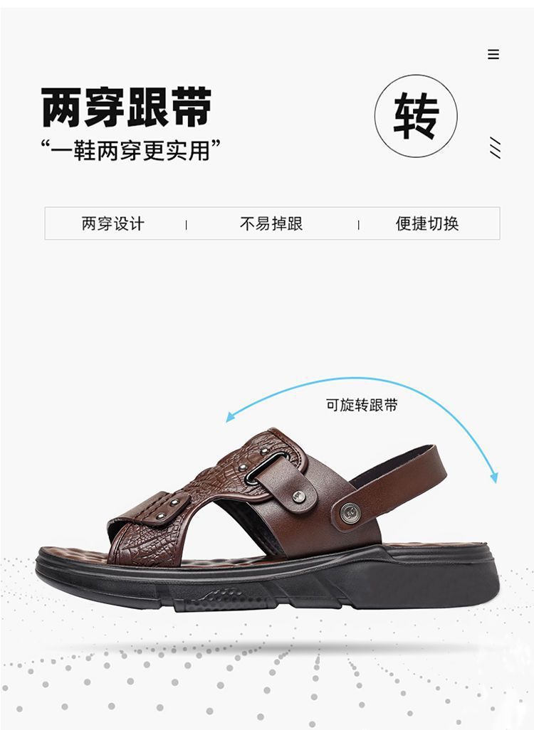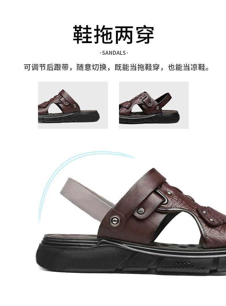 【简约大气❗️夏季男士拖鞋】双脚不打滑❗️夏天一拖两穿,皮革凉鞋男士,防滑踩屎感厚底一字拖,中老年爸爸室外运动开车两用沙滩凉鞋L