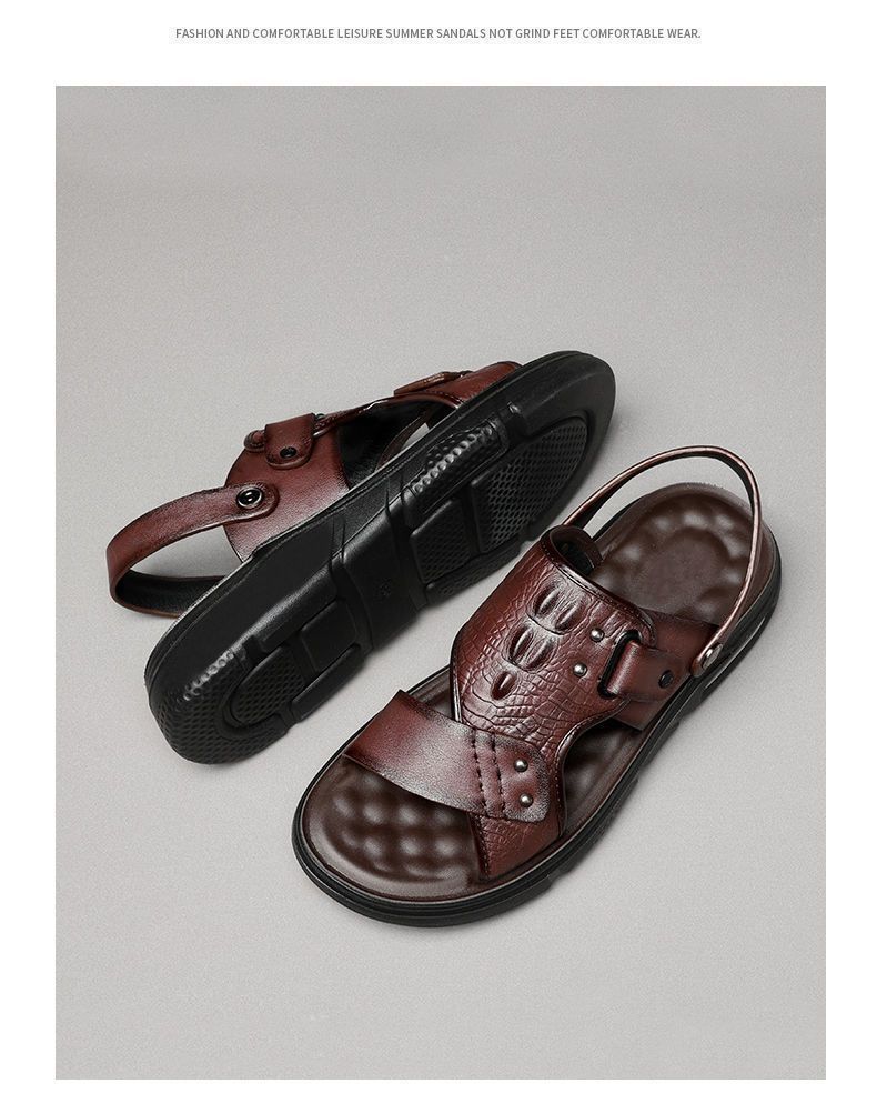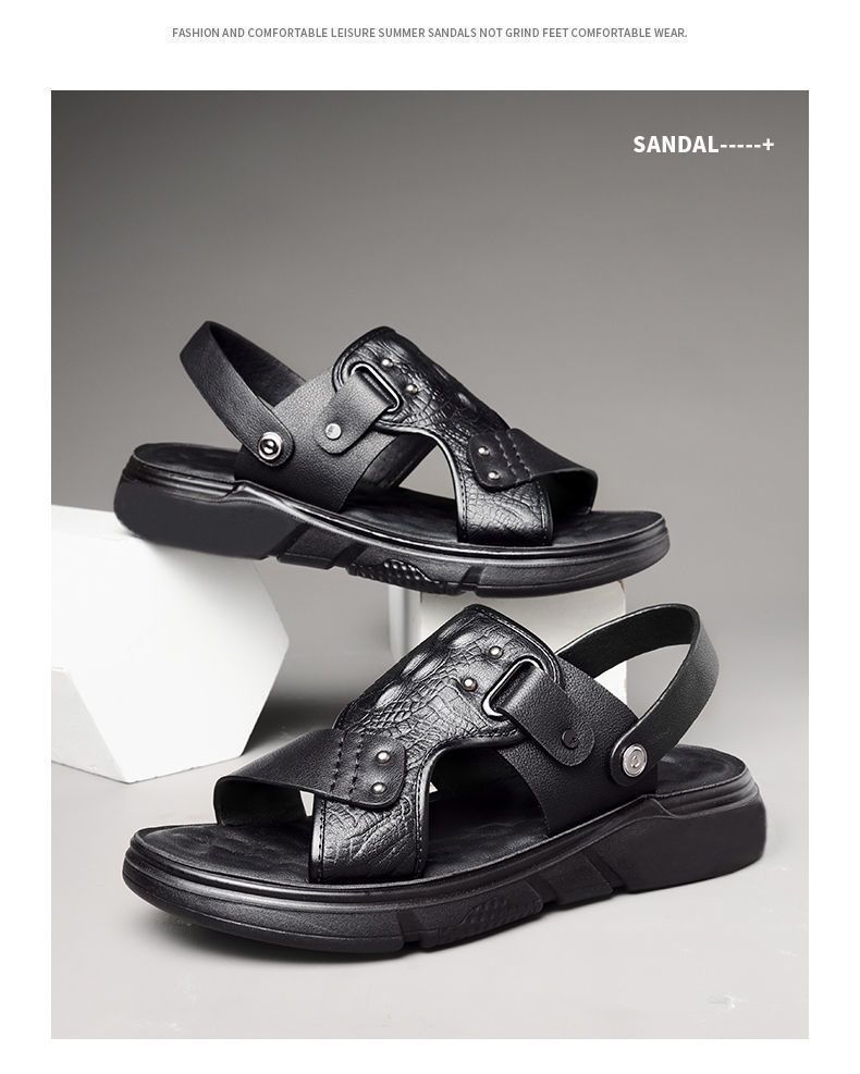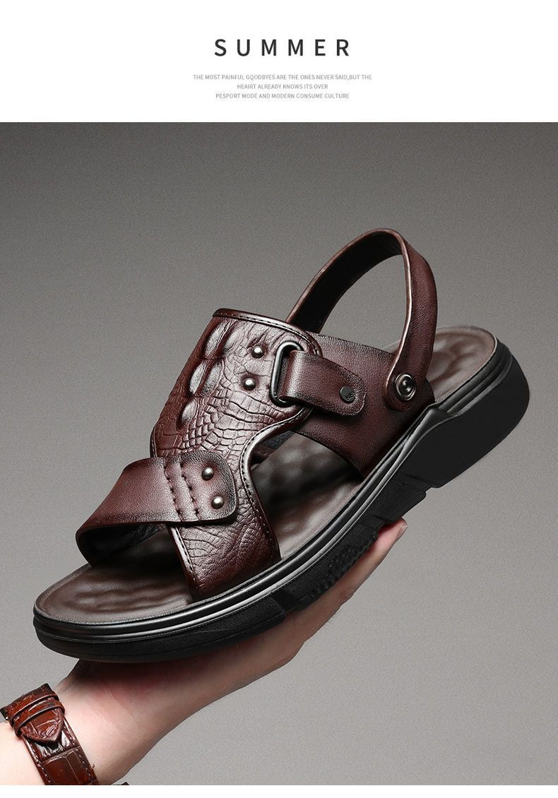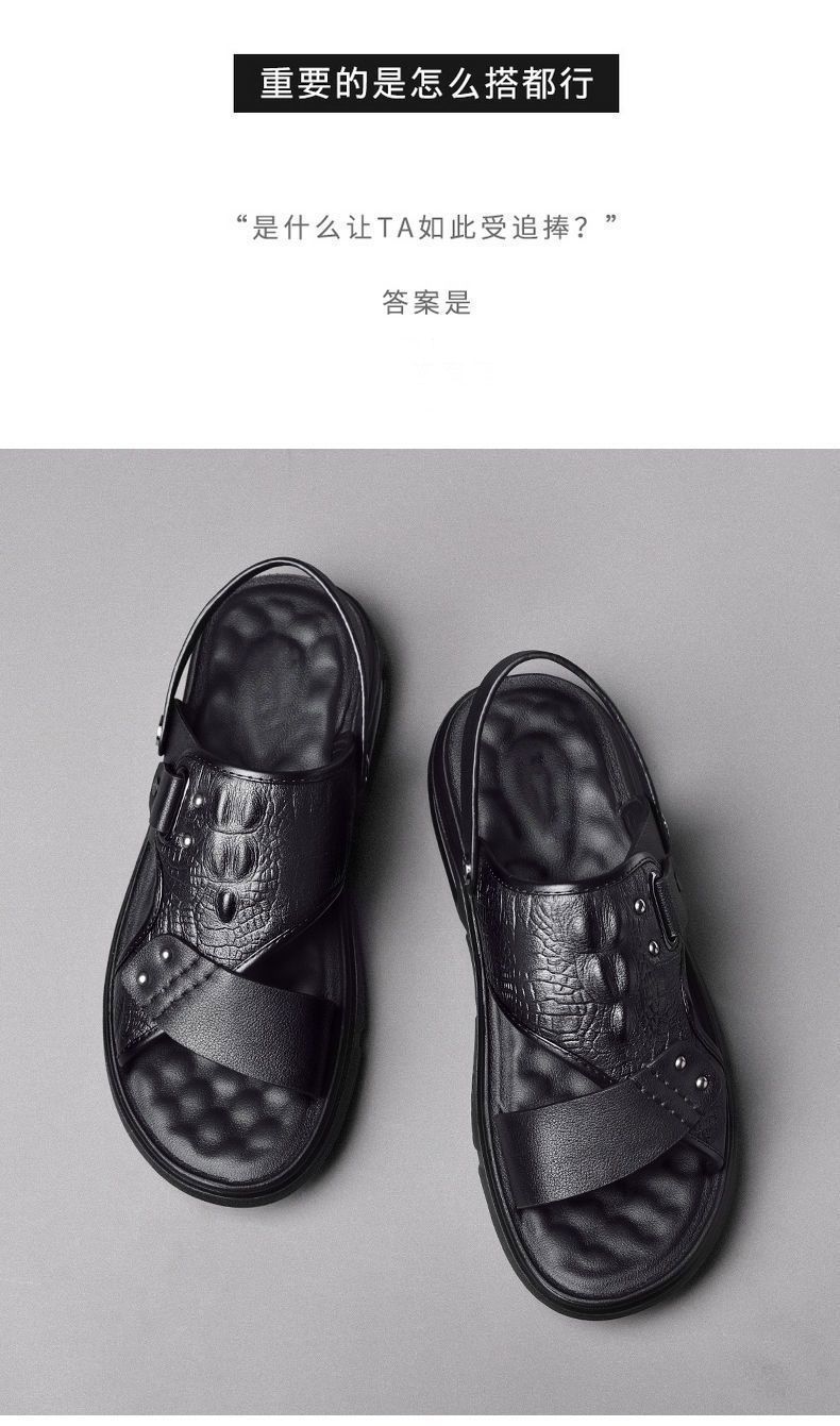 【简约大气❗️夏季男士拖鞋】双脚不打滑❗️夏天一拖两穿,皮革凉鞋男士,防滑踩屎感厚底一字拖,中老年爸爸室外运动开车两用沙滩凉鞋L