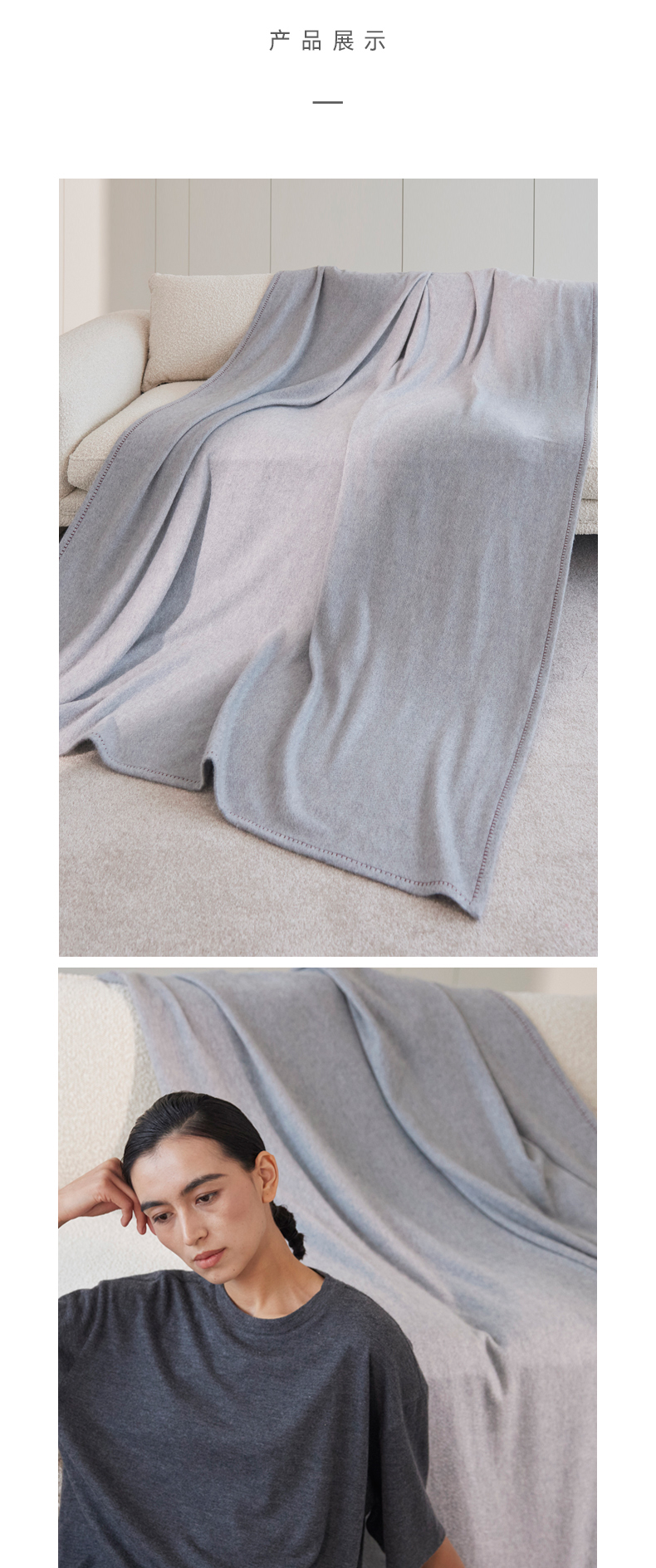 羊绒水波纹撞色锁边毯子SJF97P738N
