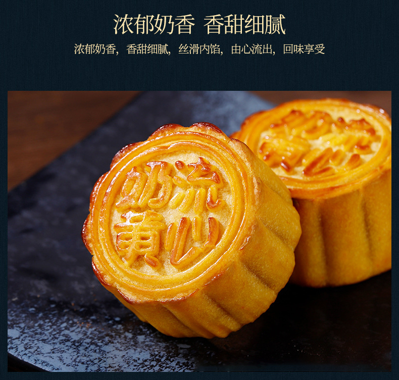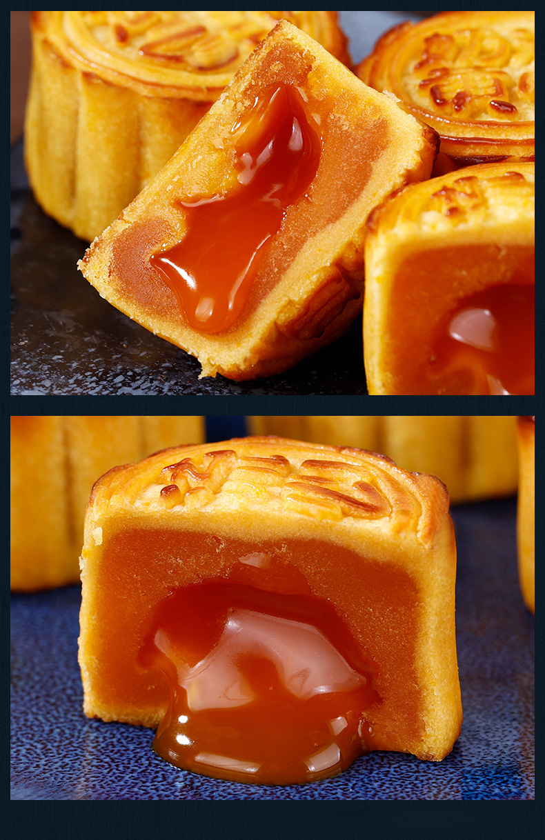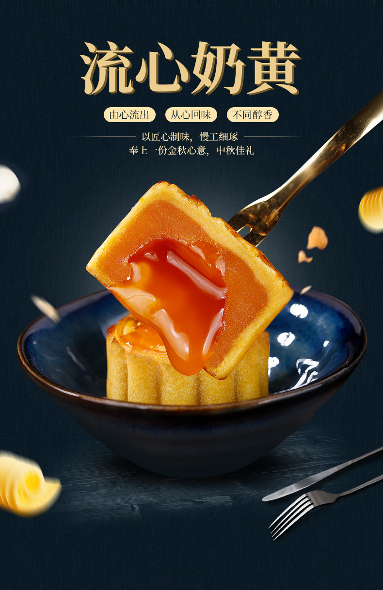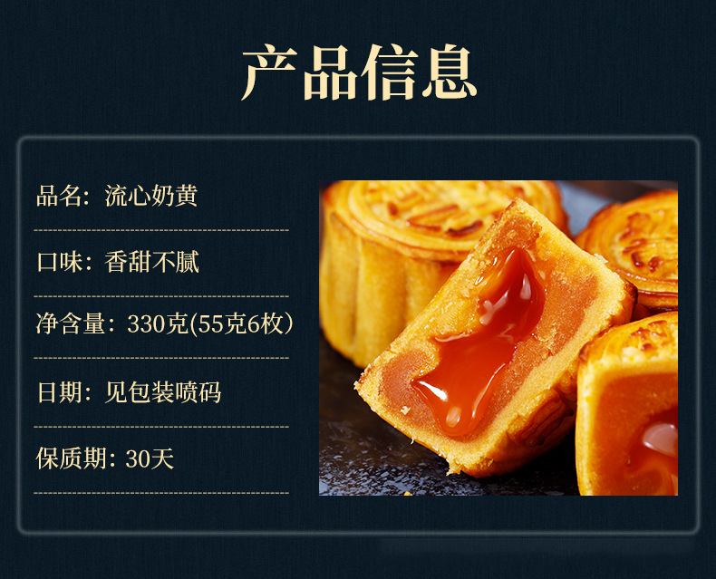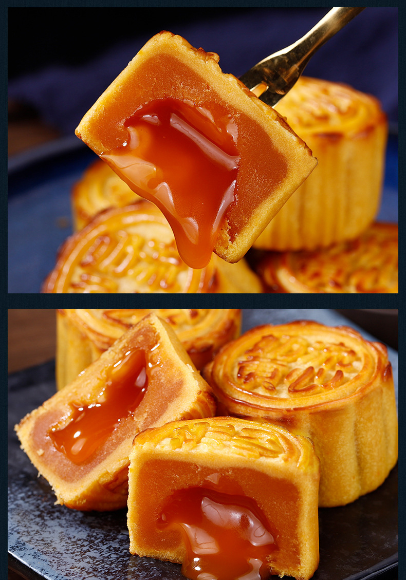 【食品酒水】 盒装6个 流心奶黄月饼早餐广式糕点美食小吃咸蛋黄流沙爆浆饼