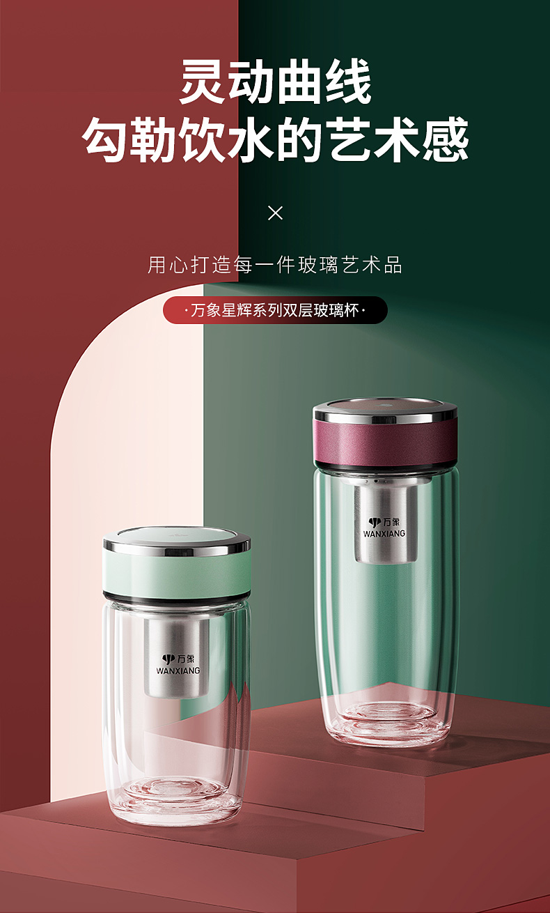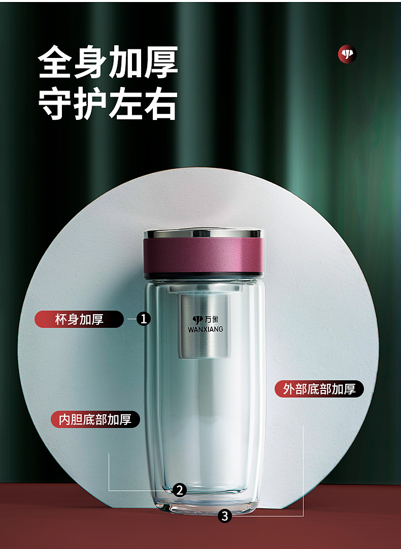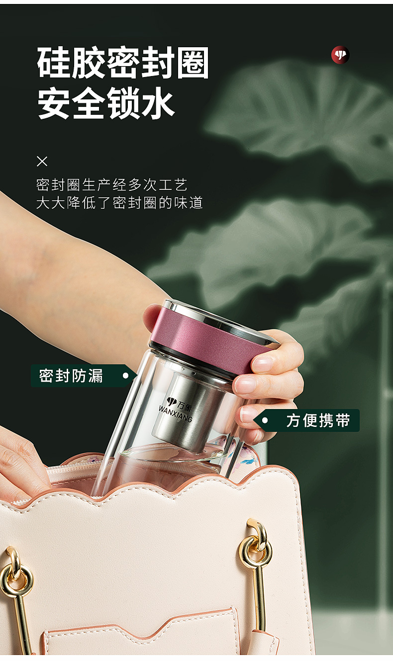 永利汇茶具玻璃泡杯家用双层水杯茶杯透明便携防烫杯子加厚过滤