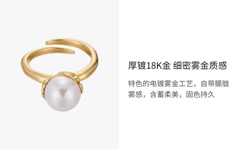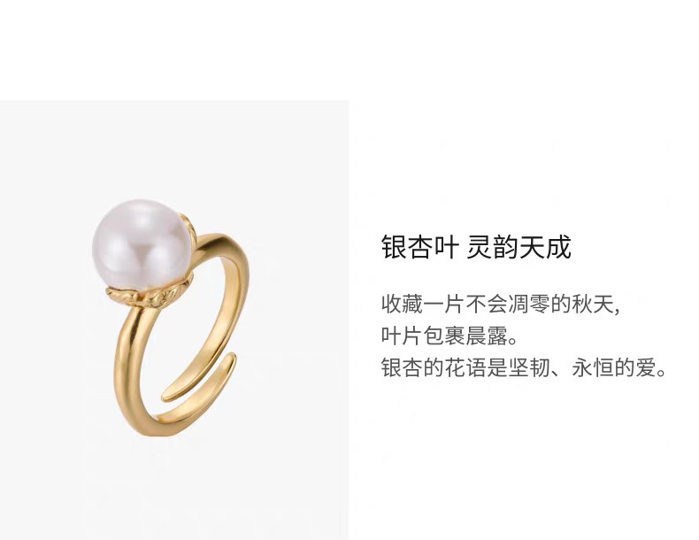 2楼「新品」Fellala/翡拉拉「秋叶」系列珍珠戒指可调节指环高级首饰货号925423802吊牌价699现价629