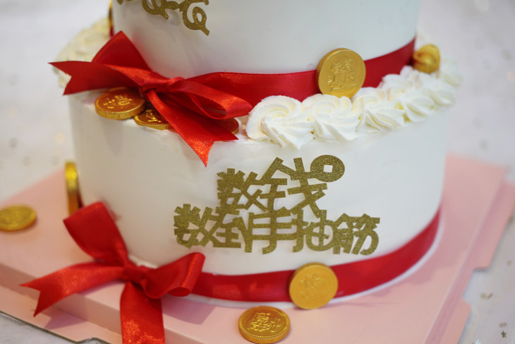 开业款蛋糕 摇钱树 金币 财源滚滚 双层