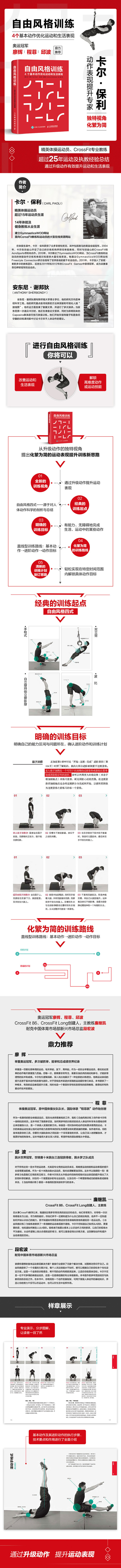 《自由风格训练:4个基本动作优化运动和生活表现》是卡尔·保利对15余年的体操运动员经历和10余年的执教经历的总结之作,从升级动作的独特视角,提出了一种化繁为简的运动表现提升训练新思路。 《自由风格训练:4个基本动作优化运动和生活表现》首先介绍了自由风格训练的理论基础,解释了通过升级动作改善人体运动表现的训练原理。接着,《自由风格训练:4个基本动作优化运动和生活表现》采用分步图解的方式,对手枪式、倒立俯卧撑、双力臂和波比——四个自由风格训练的基本动作及其进阶动作的执行步骤、技术要点和作用进行了全面介绍。同时,本书讲解了自由风格训练计划的制订方法,提供了针对不同锻炼水平的人群的训练计划案例。不论是希望改善运动和生活表现的普通人,还是期望发展高难度动作或运动技能的健身及运动爱好者,都可从《自由风格训练:4个基本动作优化运动和生活表现》中受益。