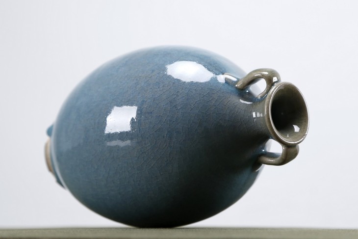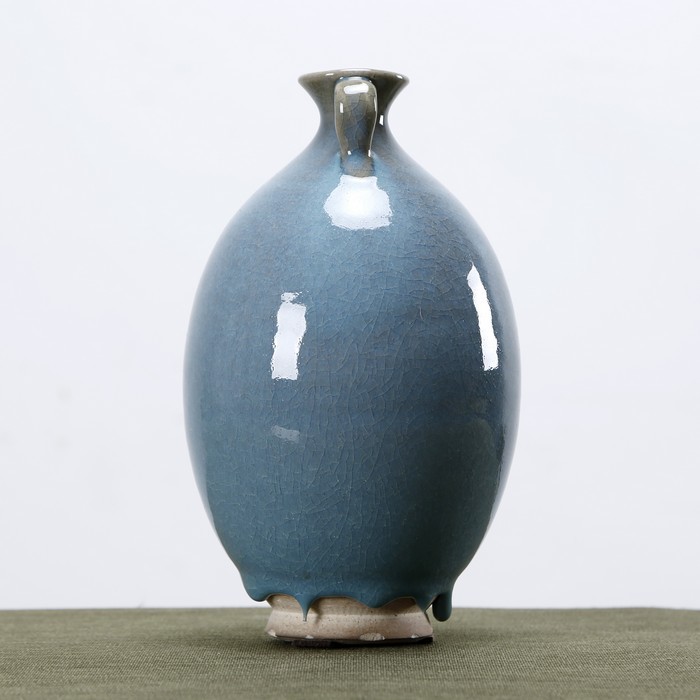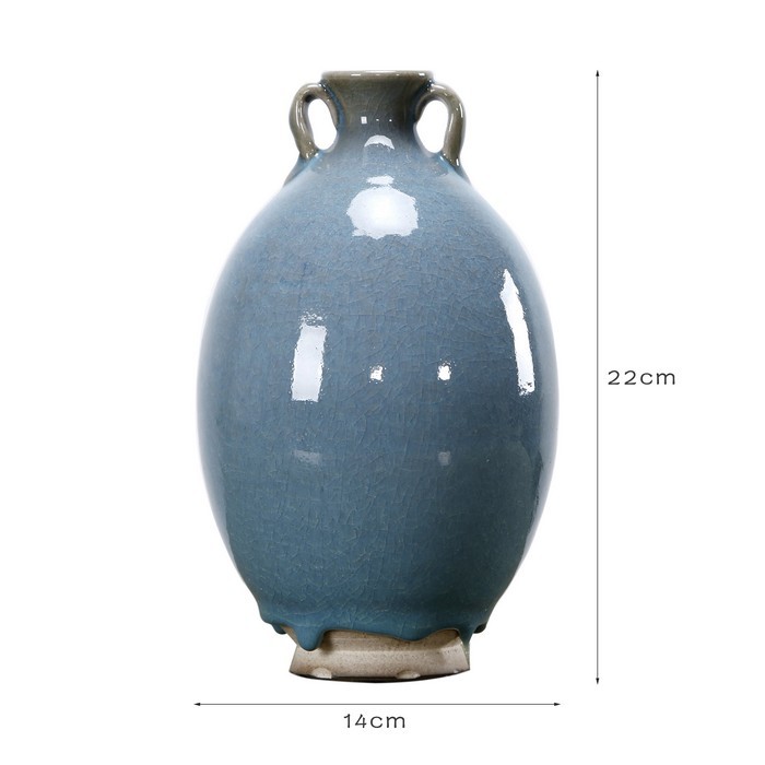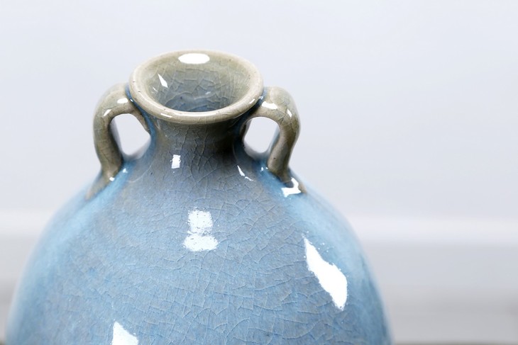 蓝釉双耳小花瓶 Chic blue glaze vase with two handle