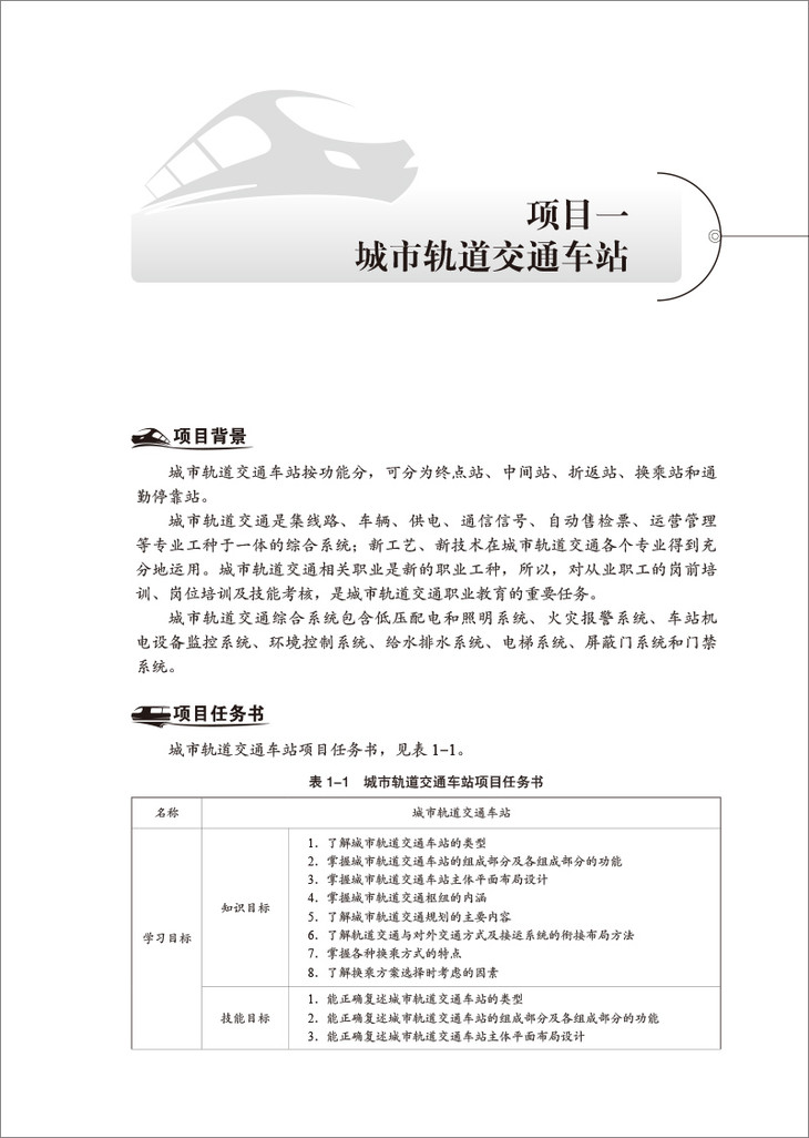 第一部分是站场部分,主要介绍两个内容:车站【项目一城市轨道交通车站】与车辆基地【项目二城市轨道交通车辆基地】。车站是城市轨道运营的外部联系(对外服务)的窗口,车站提供服务有乘客乘降、换乘和候车、接发列车。