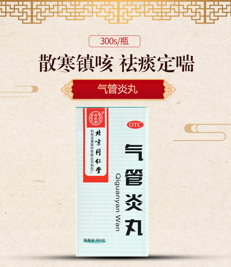 北京同仁堂气管炎丸300粒哮喘咳喘久咳止咳化痰补肺感冒咳嗽的药