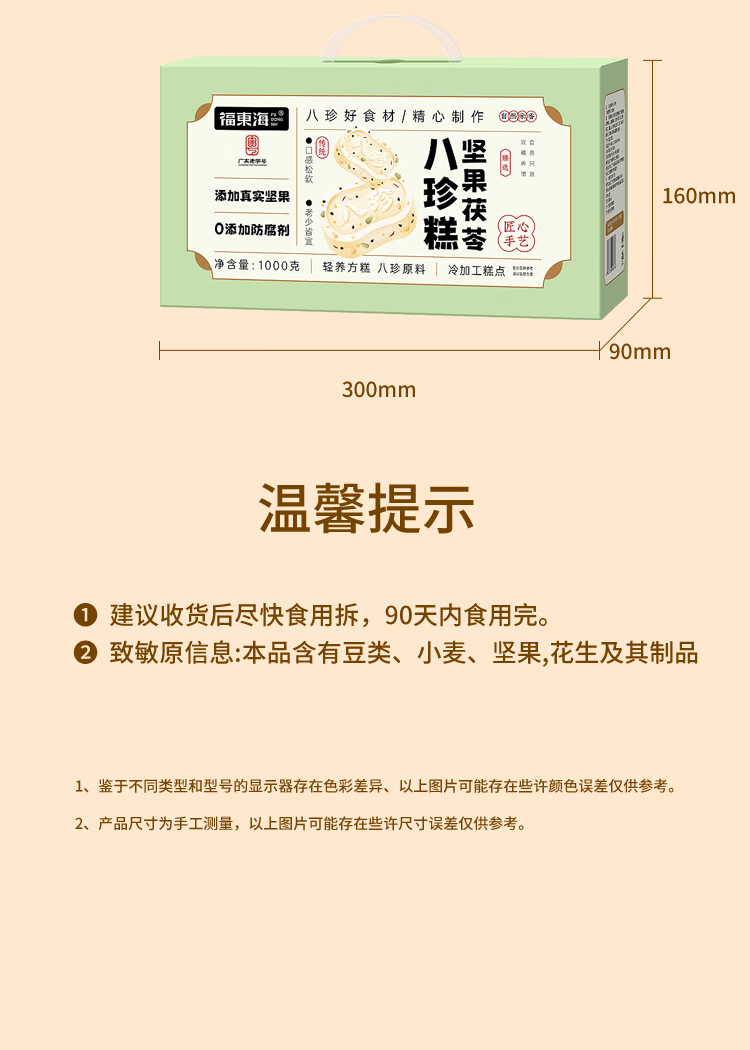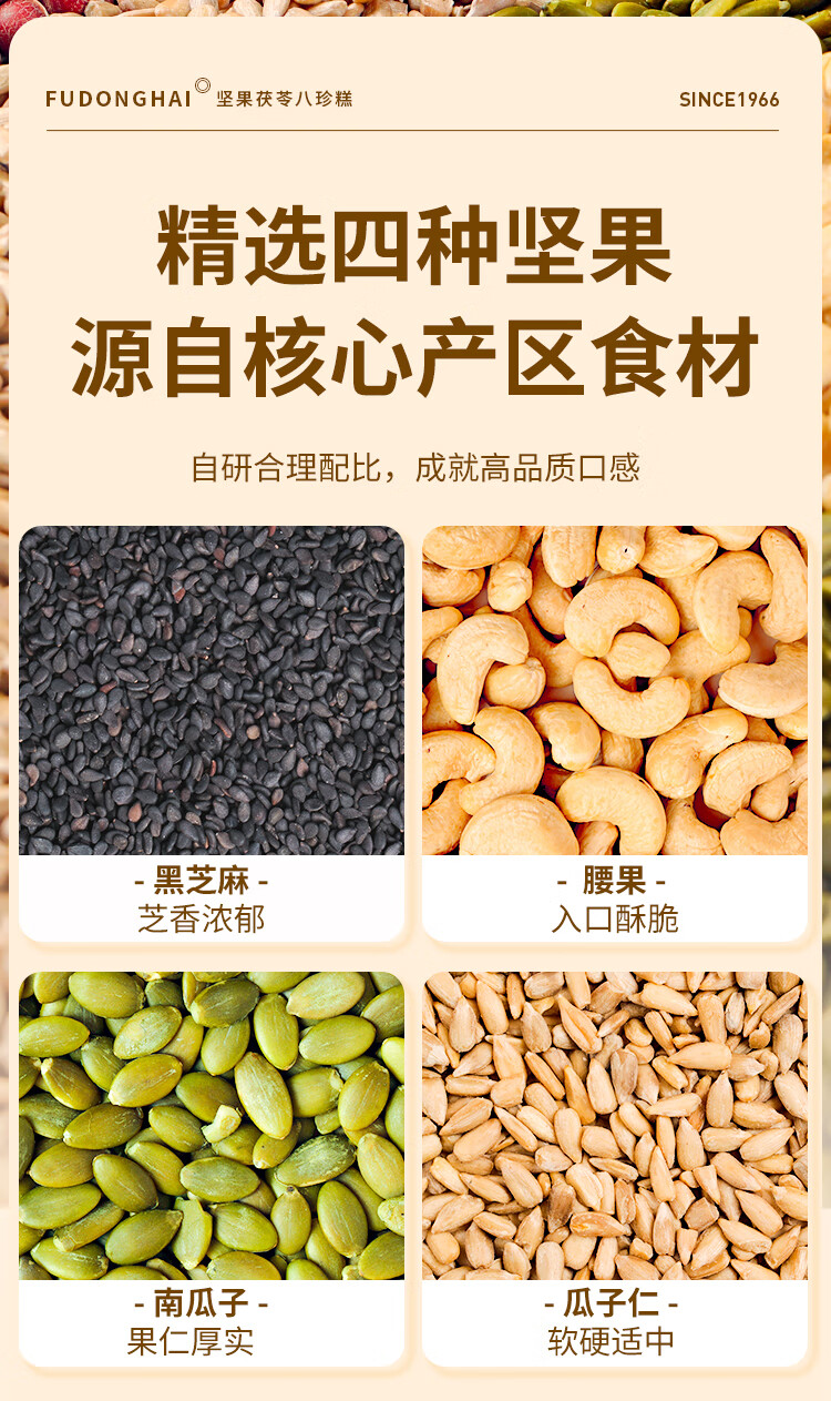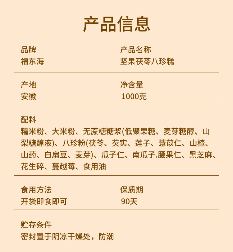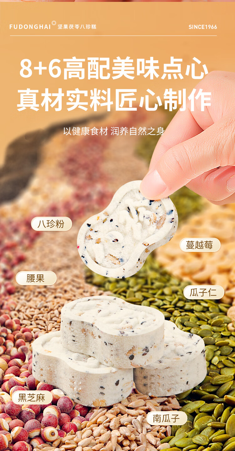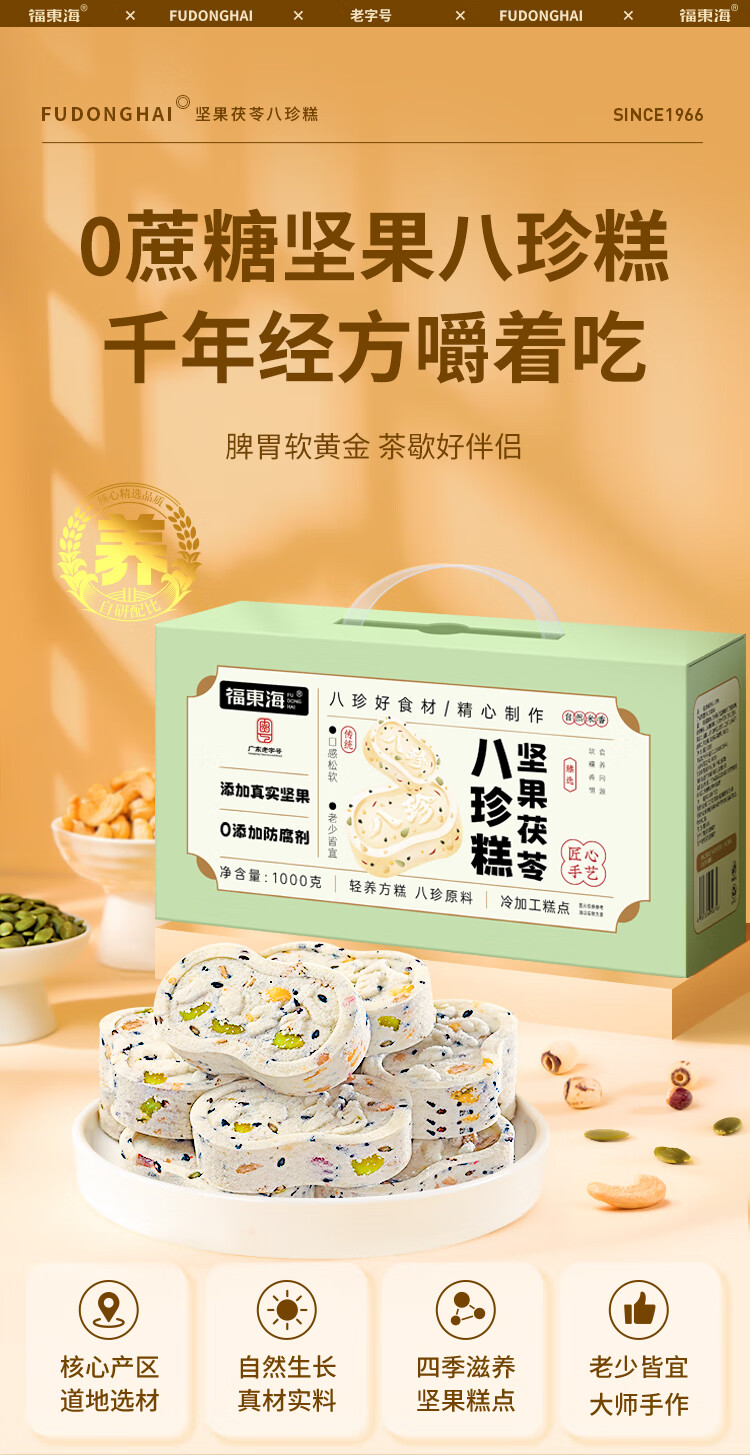 福东海 坚果茯苓山药八珍糕1000g【无添加蔗糖】芡实米糕薏湿糕零食礼盒
