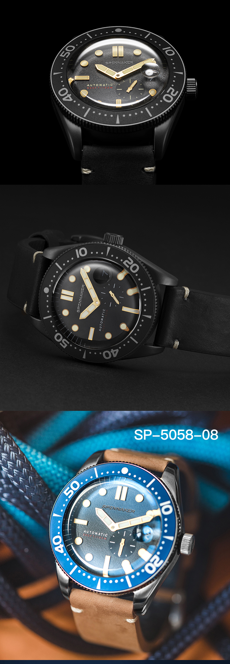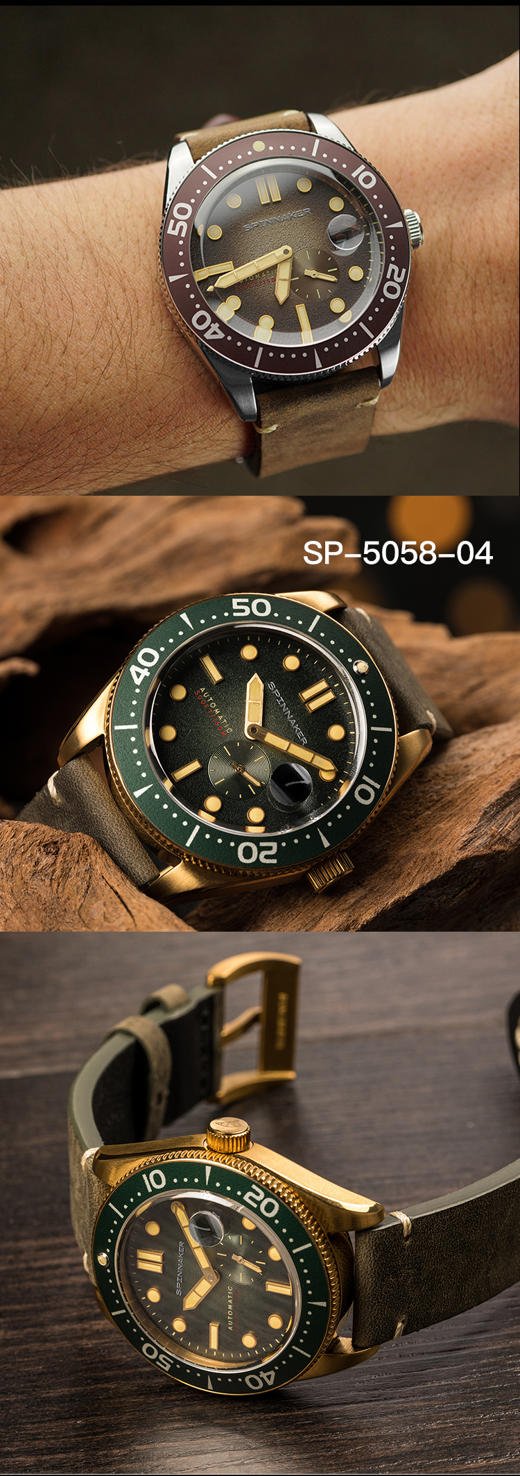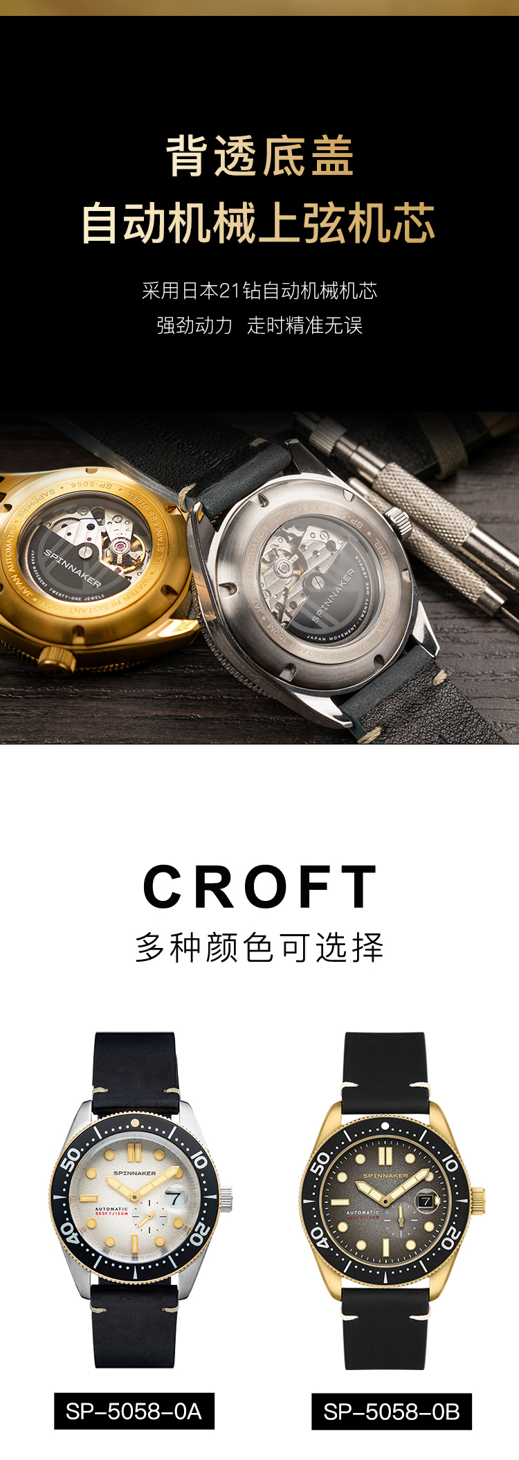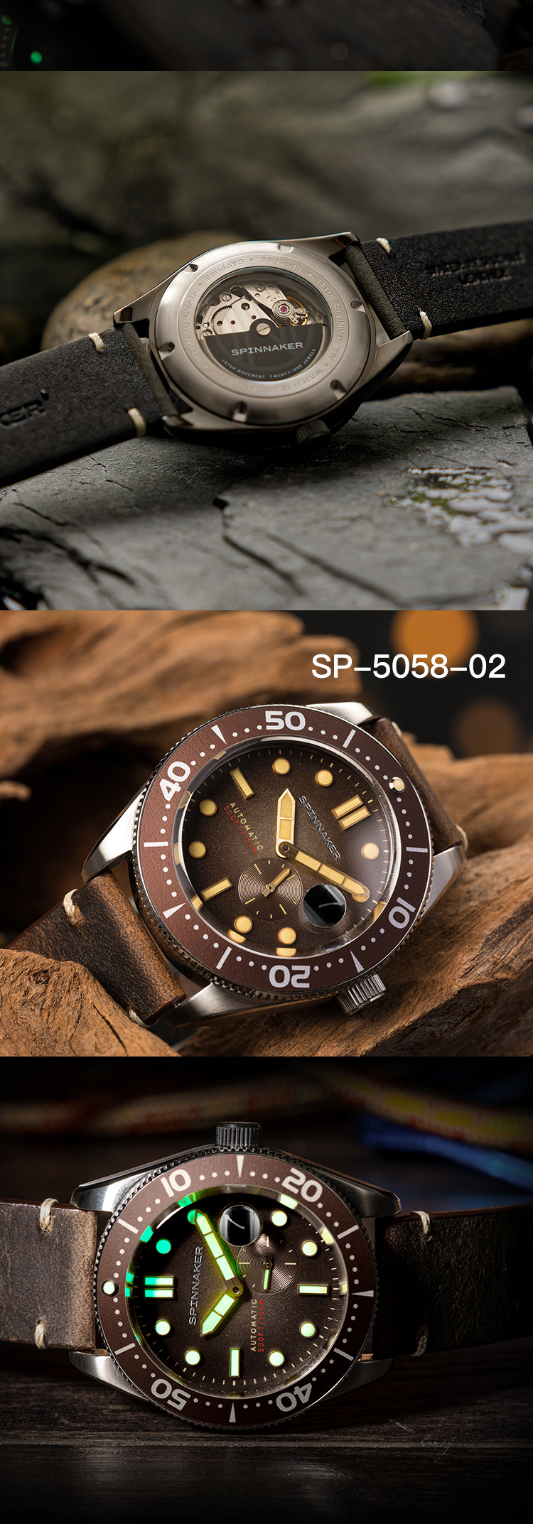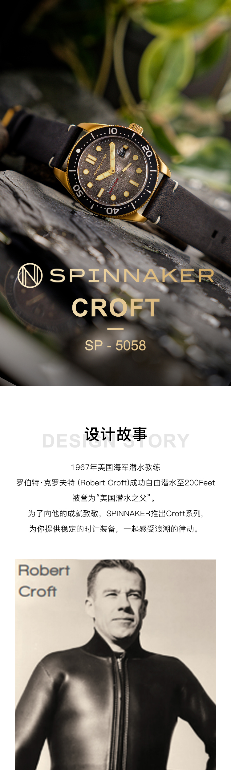 英国SPINNAKER三角帆CROFT复古自动机械手表烟熏面夜光水鬼5058
