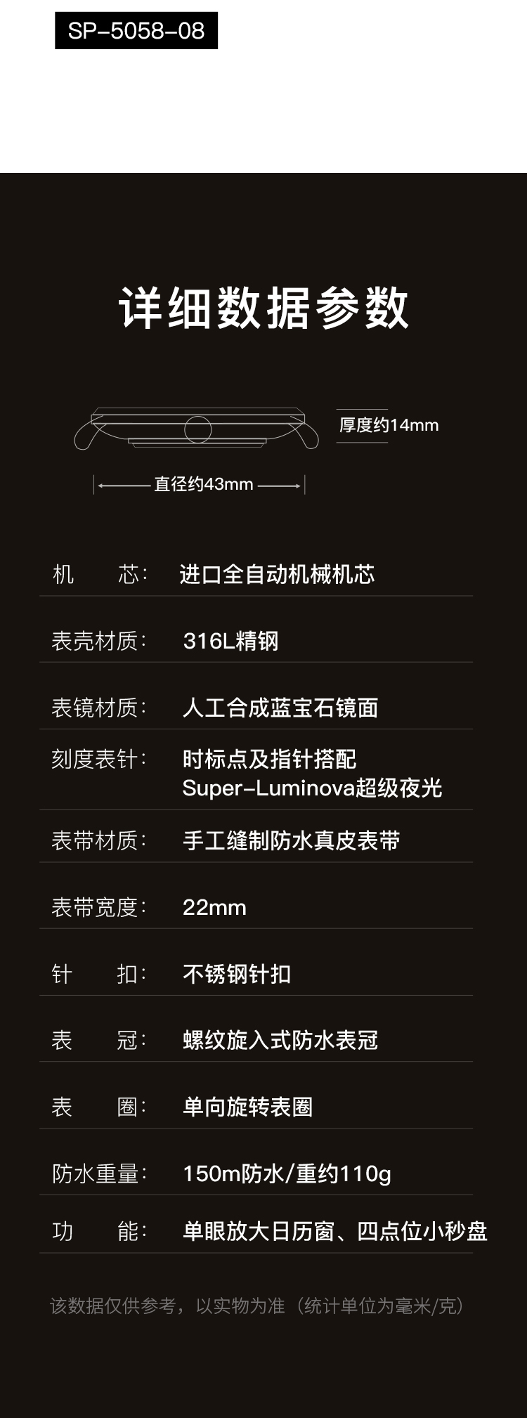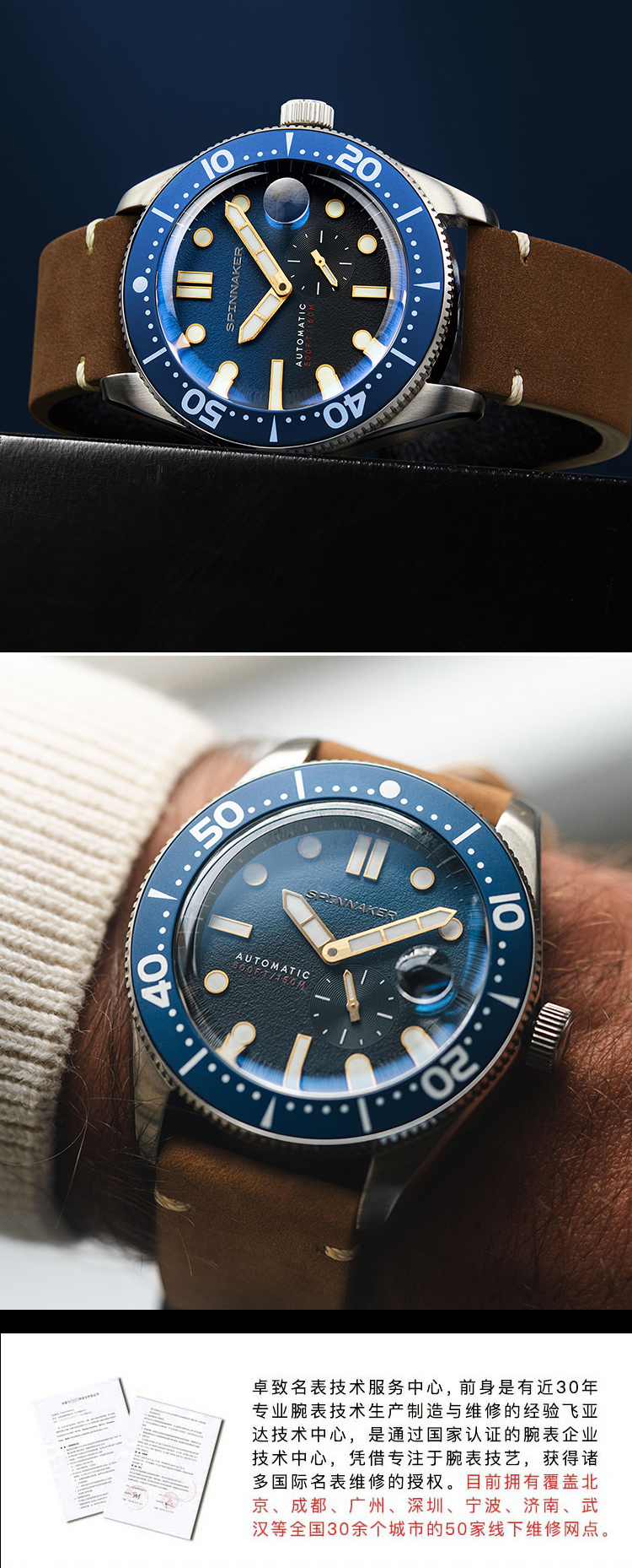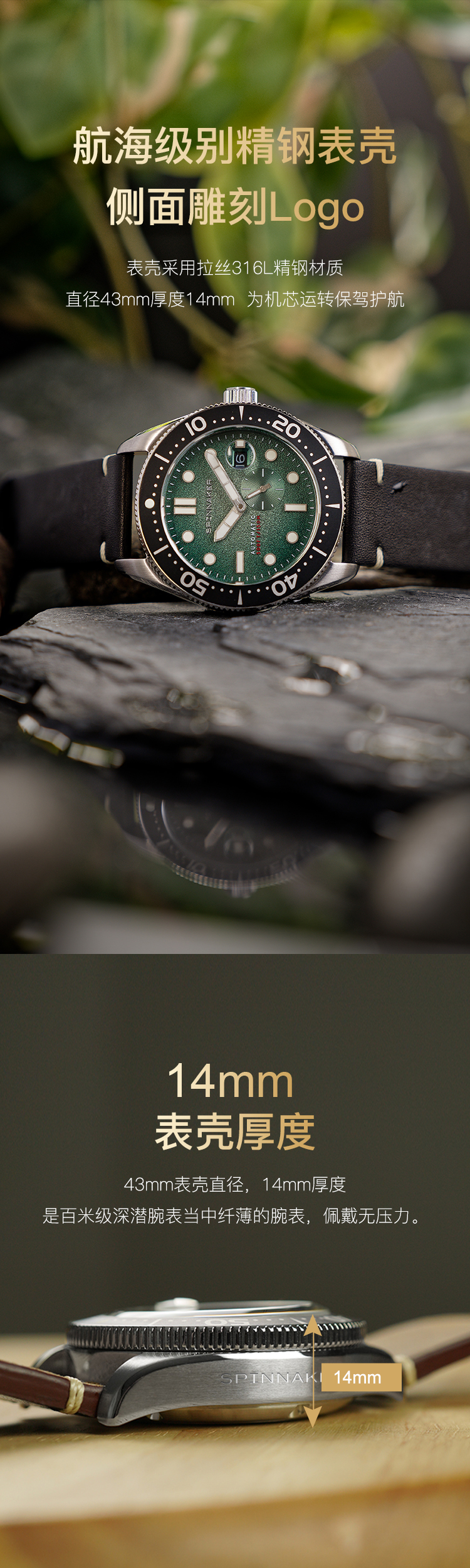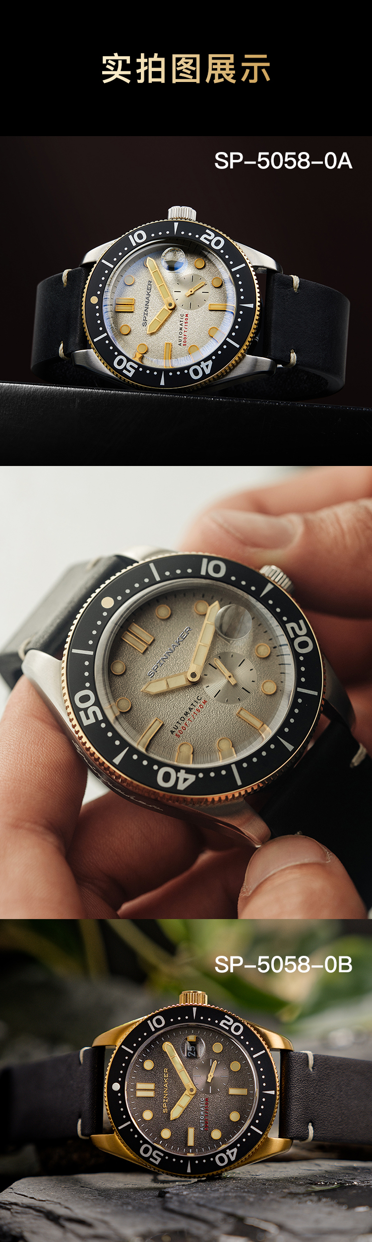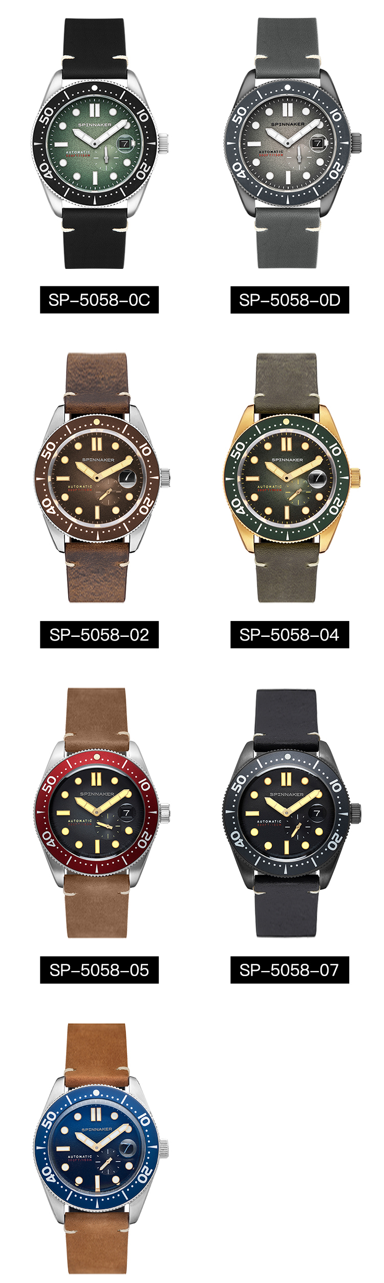 英国SPINNAKER三角帆CROFT复古自动机械手表烟熏面夜光水鬼5058