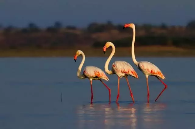 火烈鸟。东非最著名的鸟类,鲜艳的颜色、优雅的身姿、数以百万计的数量,堪称大自然的杰作;火烈鸟以吞食湖中的蓝藻为生,蓝藻经过火烈鸟胃部的消化,就会产生红色素,使羽毛呈现出一种耀眼的红。