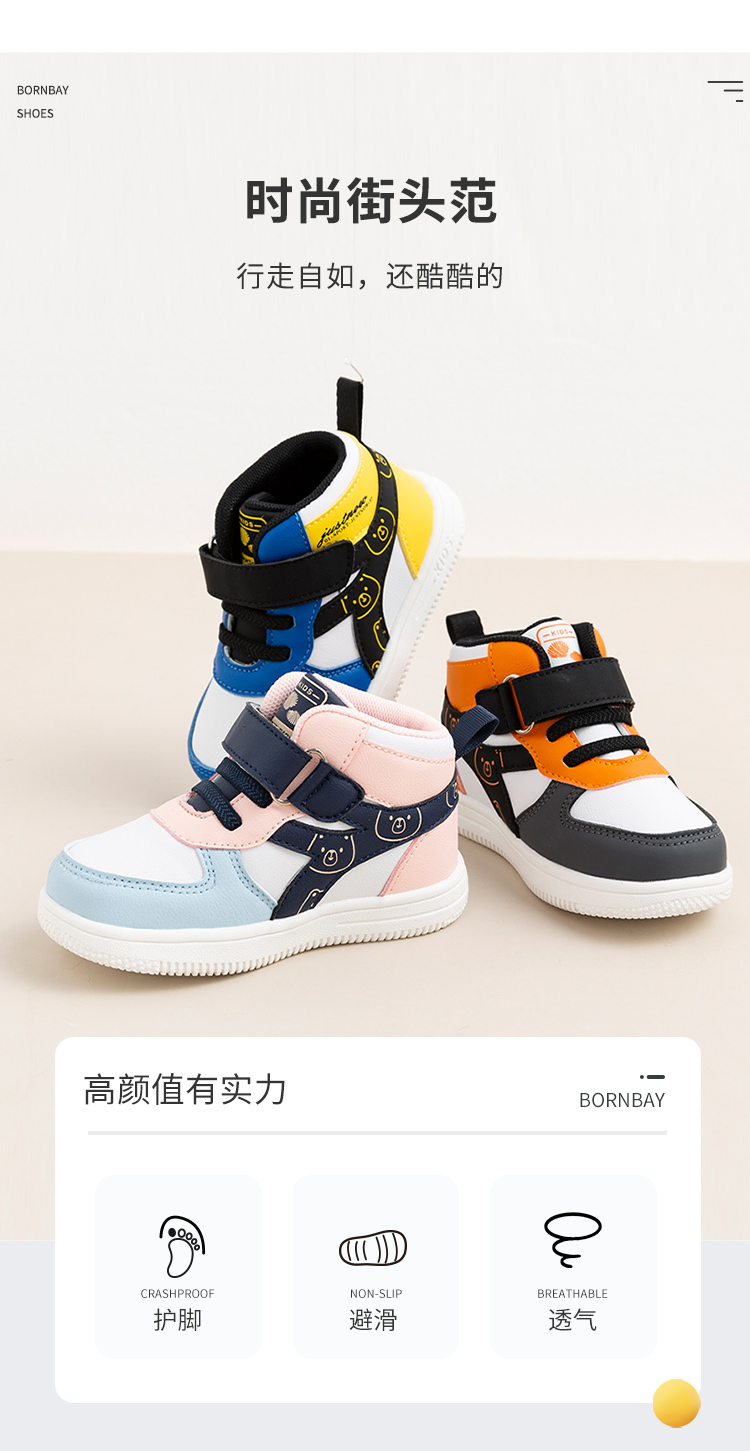 贝贝怡宝宝运动鞋儿童高帮休闲鞋春秋新款鞋子